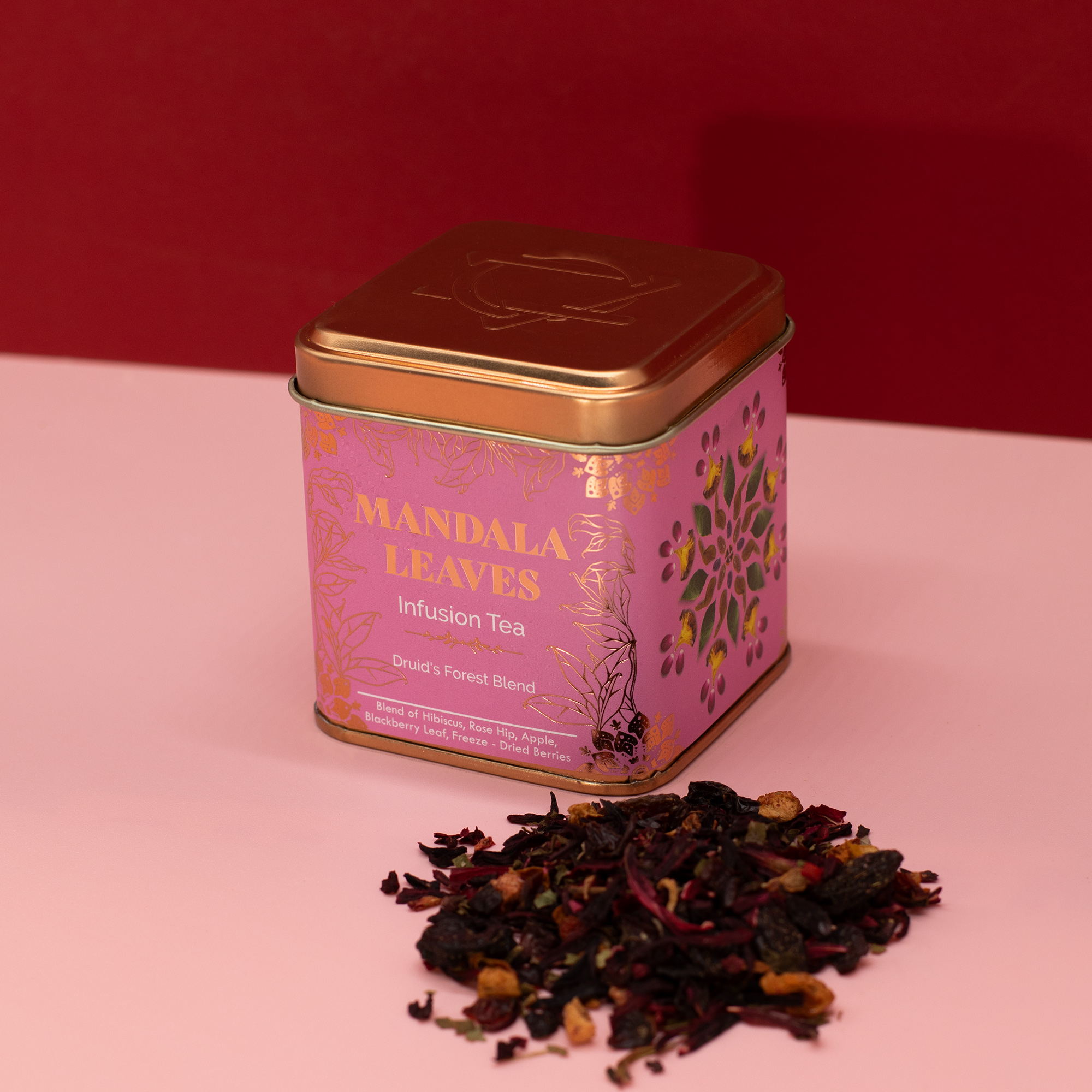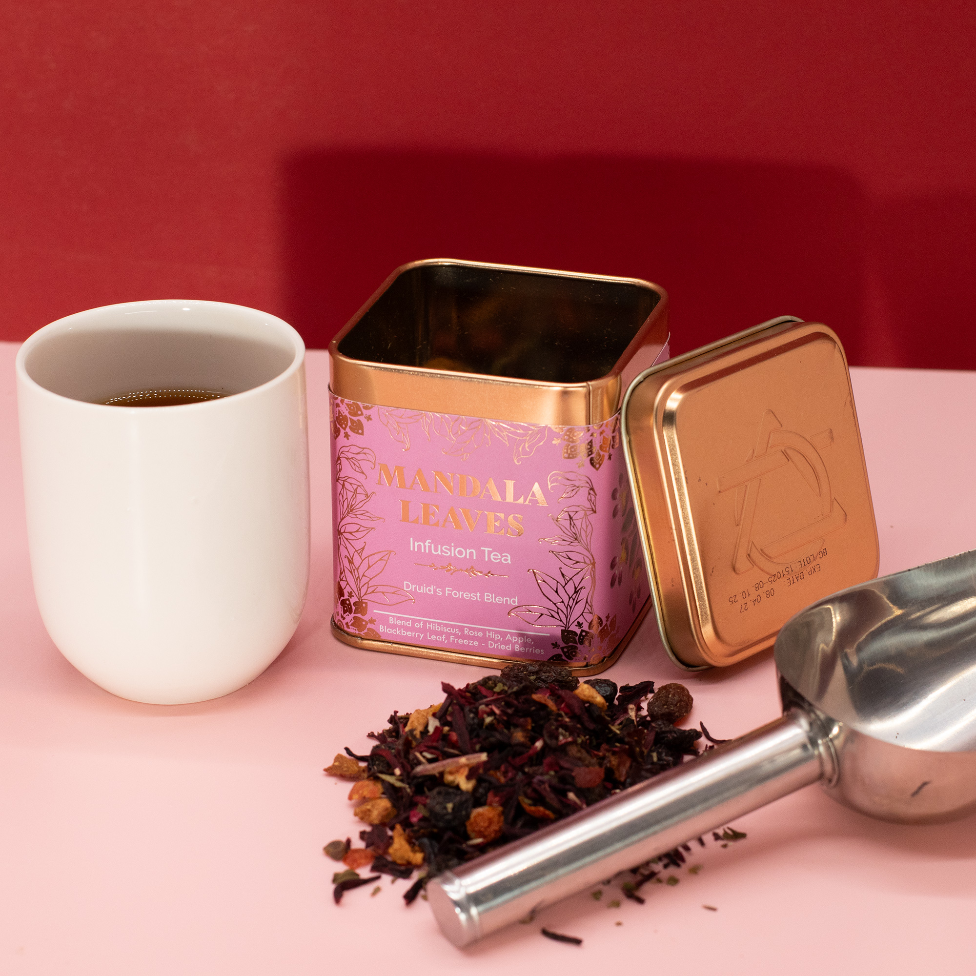 Le Mélange Forêt du Druide combine l’hibiscus, l’églantier, la pomme, la feuille de mûrier et des baies lyophilisées, créant une infusion profonde et fruitée avec une couleur naturellement riche. Les mélanges à base d’hibiscus et de baies sont souvent associés à une vitalité douce et à une sensation de fraîcheur naturelle, rendant ce thé attrayant pour les clients qui apprécient des options savoureuses et sans caféine.
