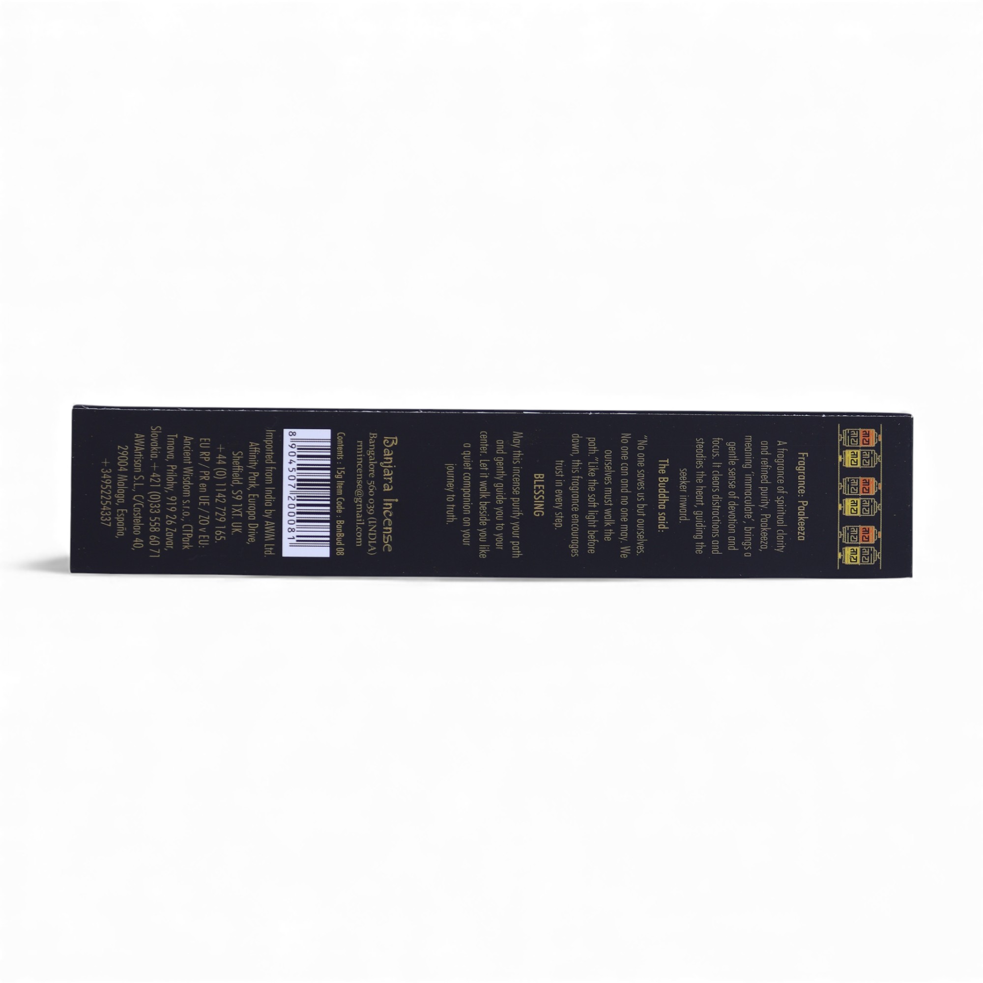 Un parfum de clarté spirituelle et de pureté raffinée. Paakeeza, signifiant « immaculé », apporte un sentiment doux de dévotion et de concentration. Il dissipe les distractions et stabilise le cœur, guidant le chercheur vers l’intérieur.