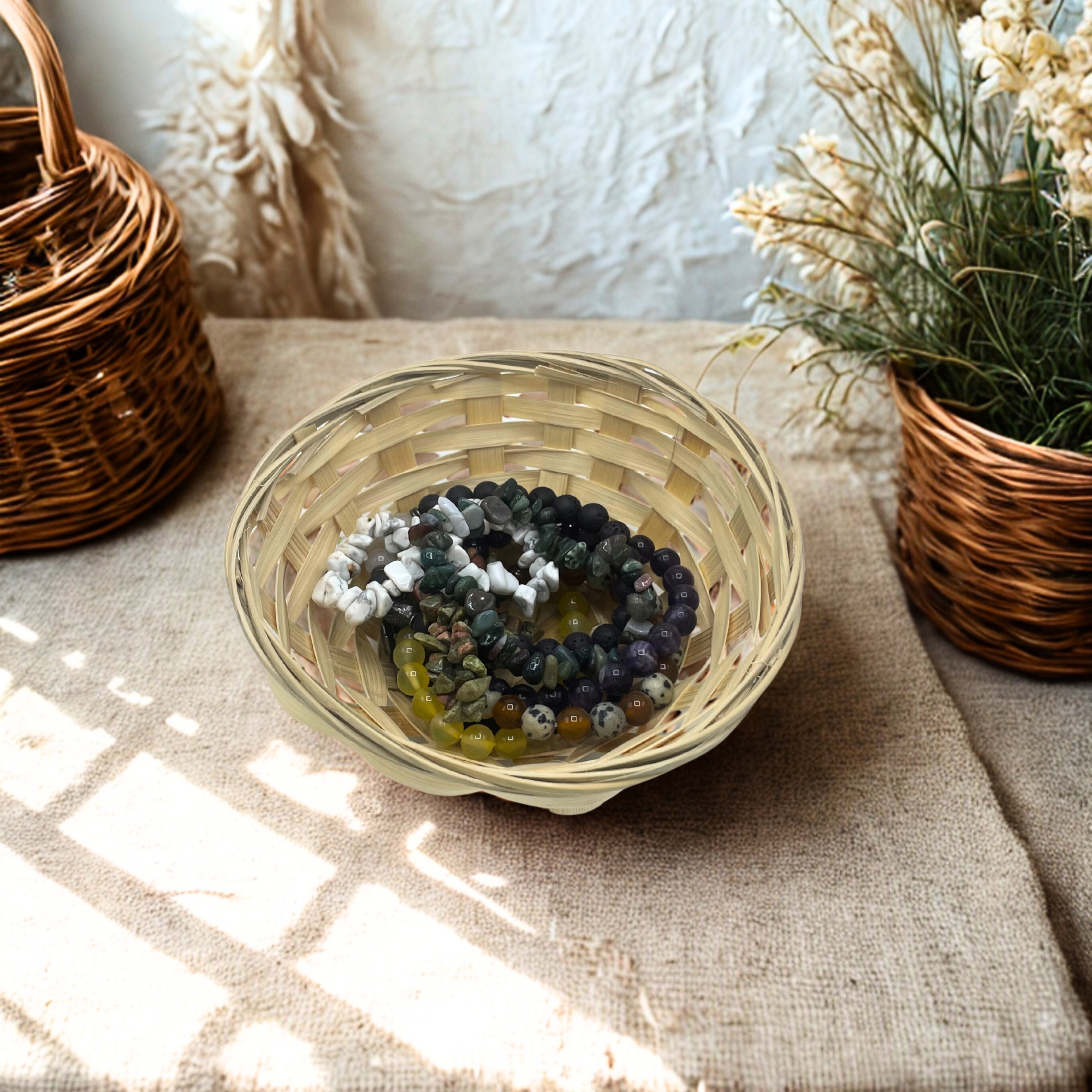 Idéaux pour les boutiques de cadeaux, cafés, boulangeries, studios ou magasins de décoration, ces paniers permettent de présenter bracelets, encens, bombes de bain, bougies, produits de boulangerie ou autres articles faits main. Les petites tailles permettent de garder les produits compacts bien organisés, tandis que les grandes sont parfaites pour créer des présentations visuellement attractives ou pour servir pain et pâtisseries.