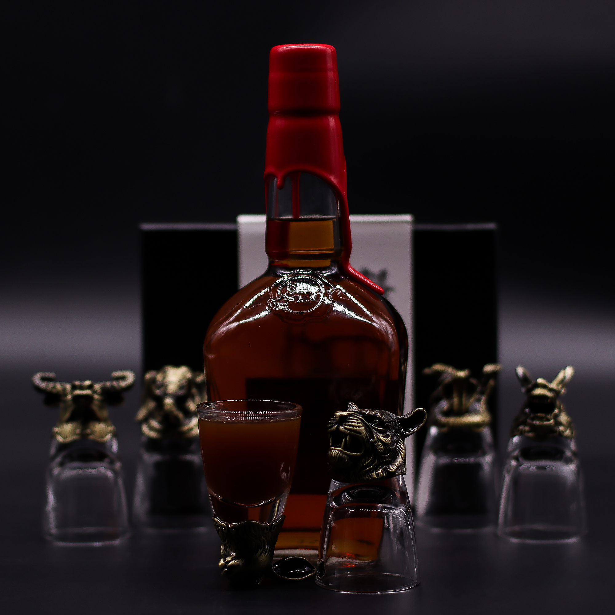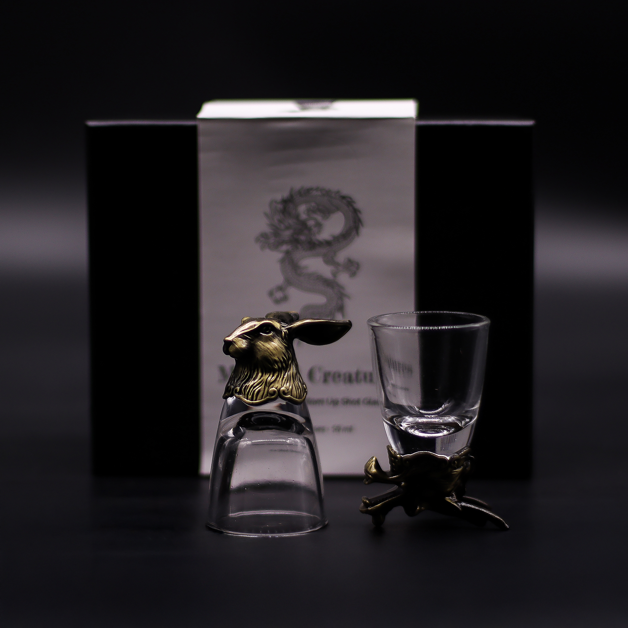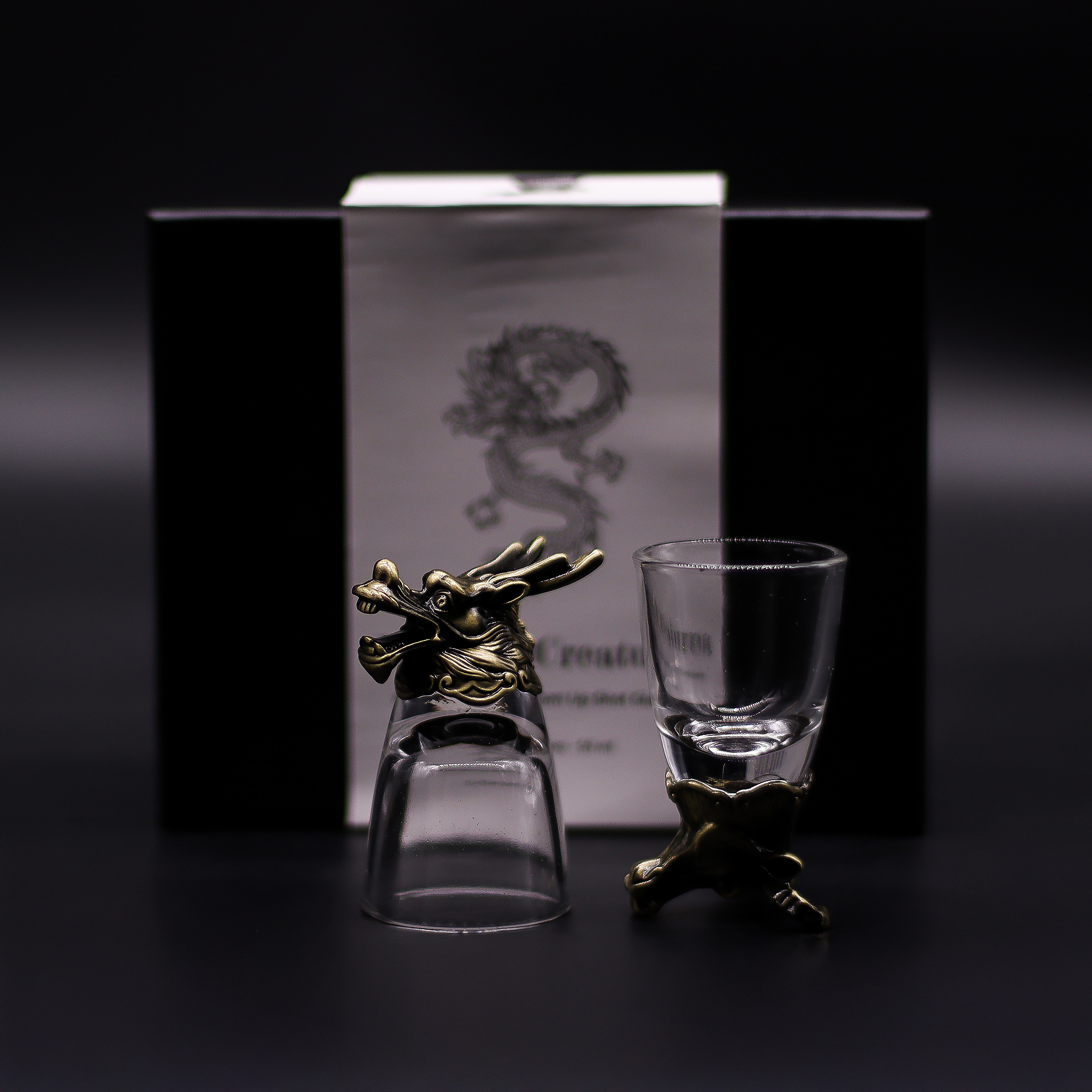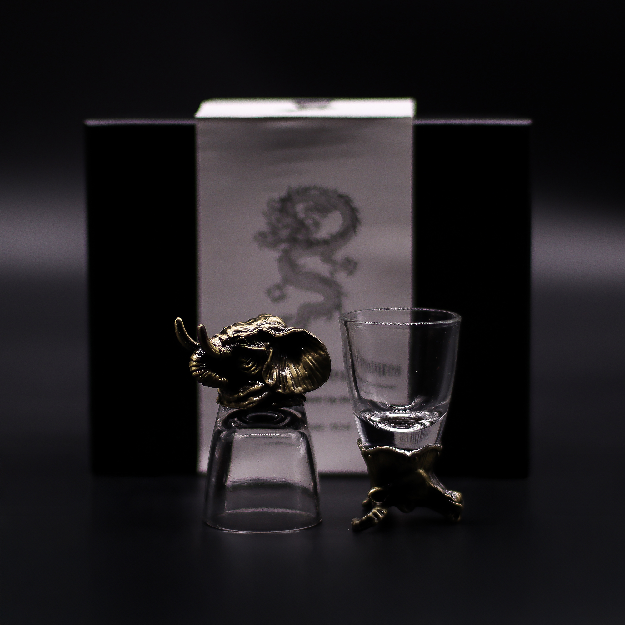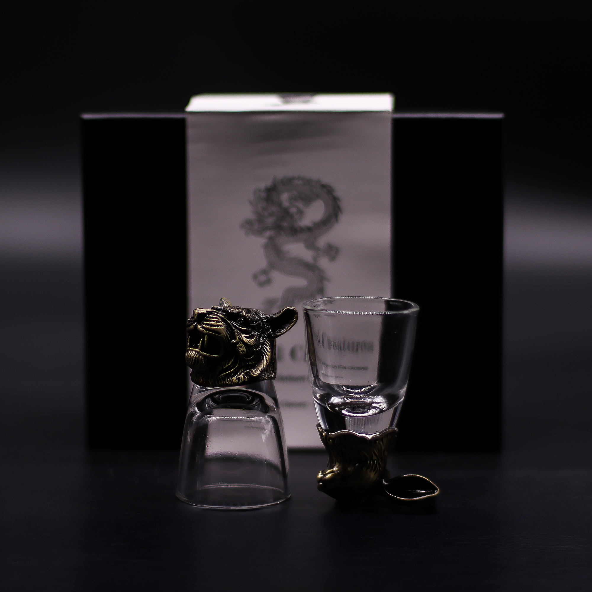 Cet ensemble de 6 verres à shot de 50 ml se distingue par ses bases en laiton finement sculptées en forme de créatures mythiques — dragon, tigre, cobra, éléphant, chèvre et bélier —, chacune réalisée avec une attention exceptionnelle aux détails.