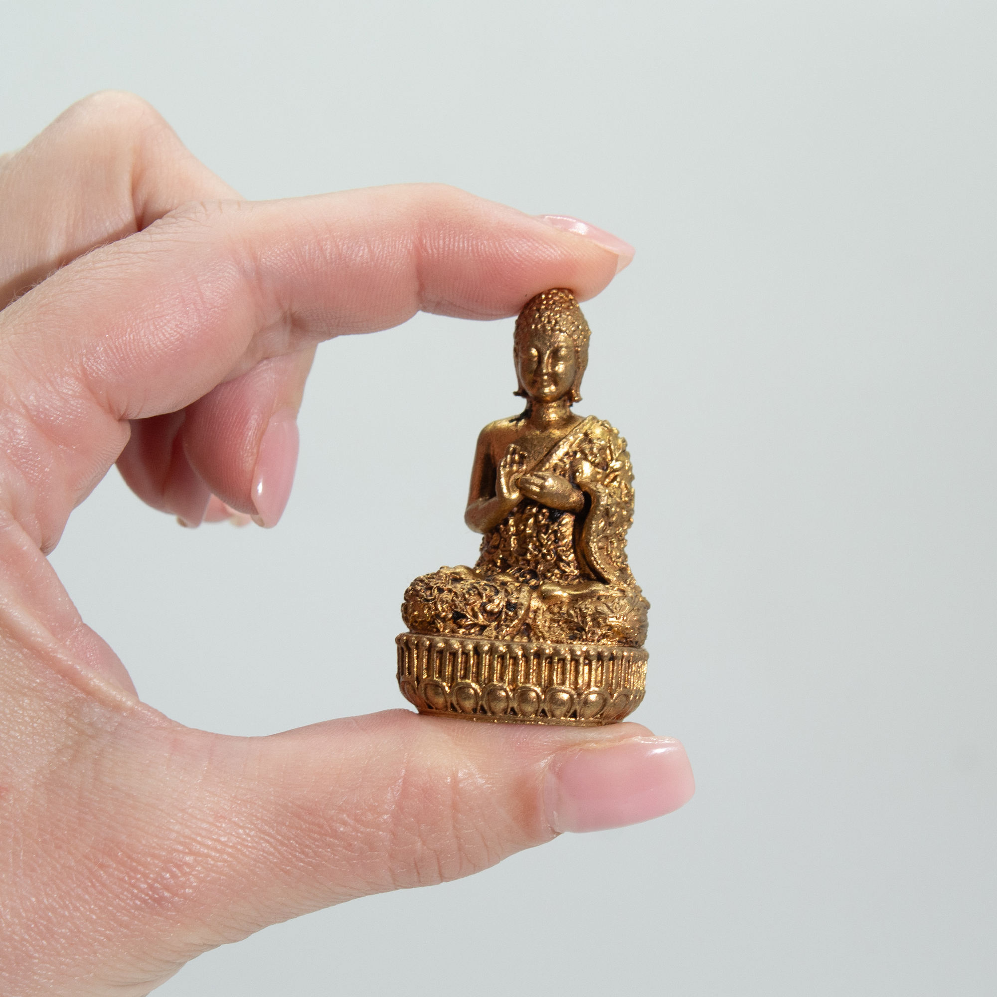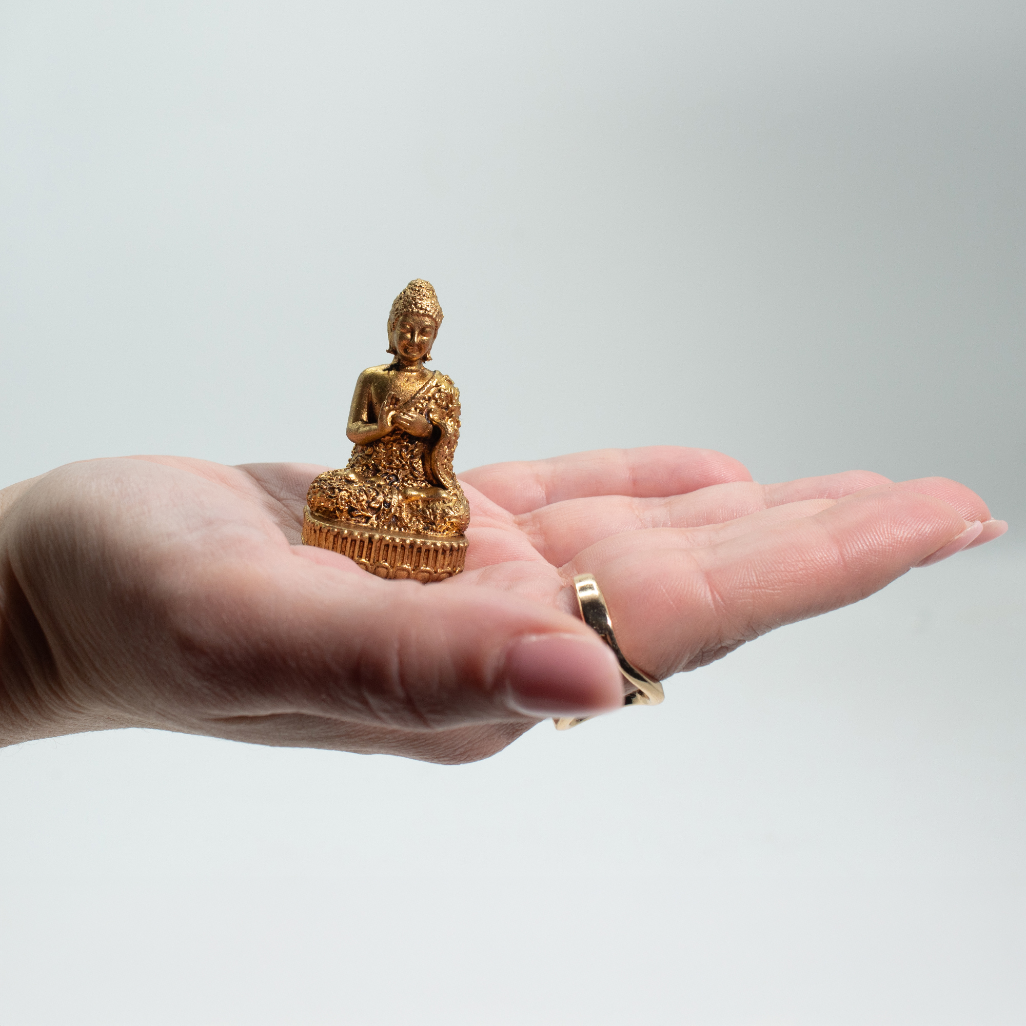 Le Bouddha Miniature en Laiton est une figure finement travaillée en laiton massif, alliant détails traditionnels et taille compacte et polyvalente. Mesurant 48 mm pour un poids de 60 g, il dégage une impression de qualité rassurante, tout en s’adaptant parfaitement aux petites étagères, bureaux, autels ou coins de méditation.