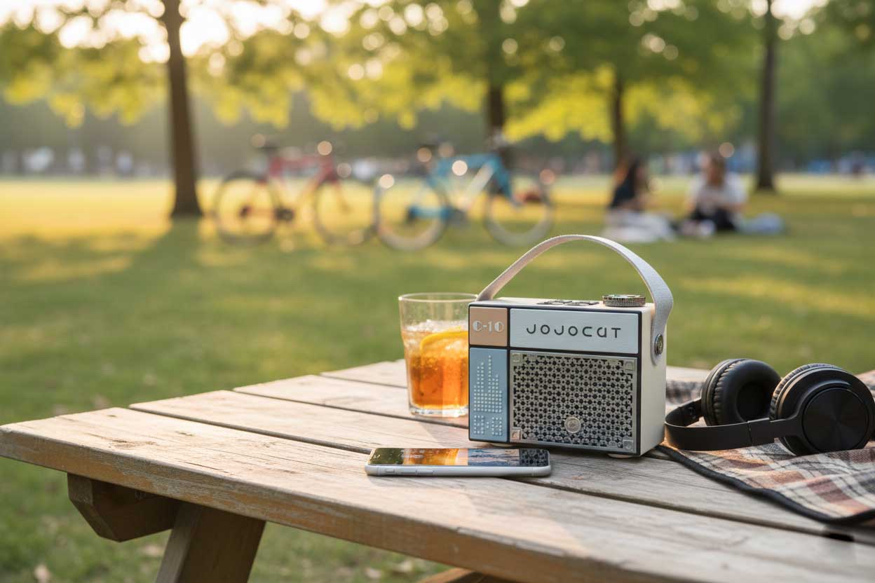 La connectivité Bluetooth assure un appairage rapide et une lecture stable, tandis que le format compact la rend facile à transporter, ranger ou exposer. Le design est moderne et orienté gadget, offrant un contraste fort avec les enceintes plus décoratives de la gamme.