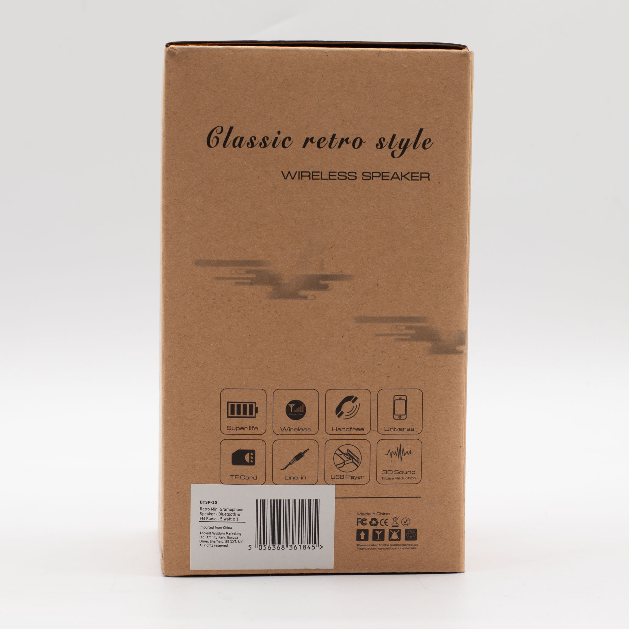 L’Enceinte Gramophone Mini Rétro – Bluetooth & Radio FM apporte le charme vintage dans les espaces modernes. Conçue comme un objet compact et décoratif, sa corne classique et sa base effet bois en font un choix idéal pour bureaux, étagères ou tables de chevet, combinant attrait esthétique et praticité audio quotidienne.