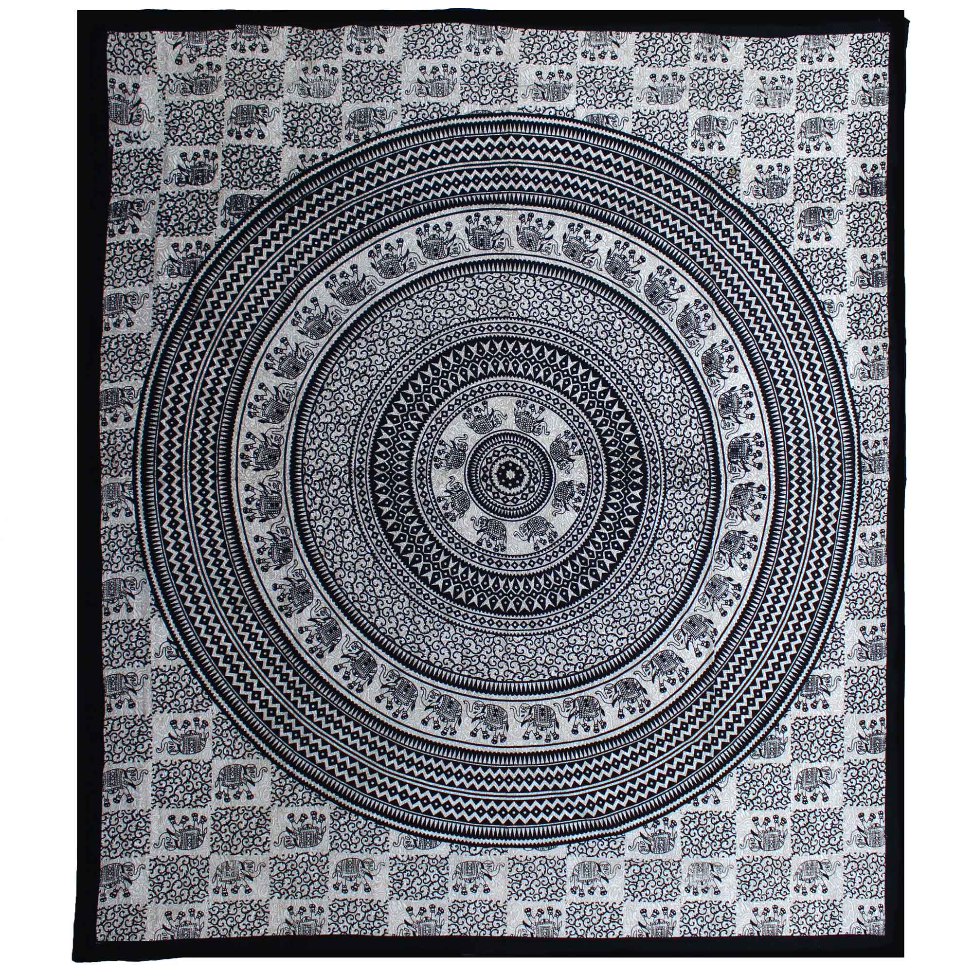 Elles peuvent être utilisées comme couvre-lit ou simplement pour décorer le mur. Notre double couvre-lit en coton + suspension murale - Mono - Elephant Mandala est un chef-d'œuvre de symbolisme et de beauté.