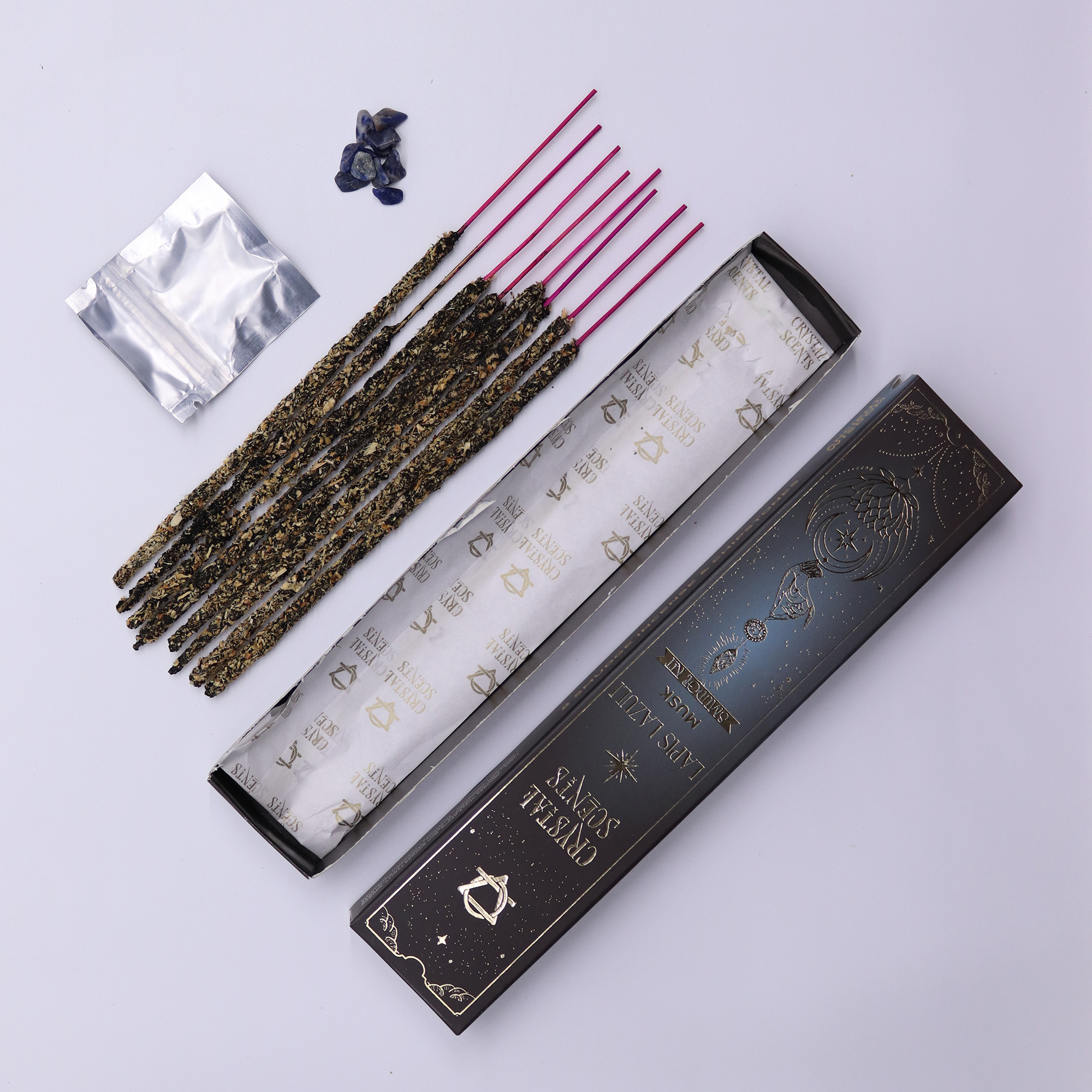 Pack de 10 bâtons + cristal authentique, idéal pour les boutiques orientées étude, créativité ou introspection.