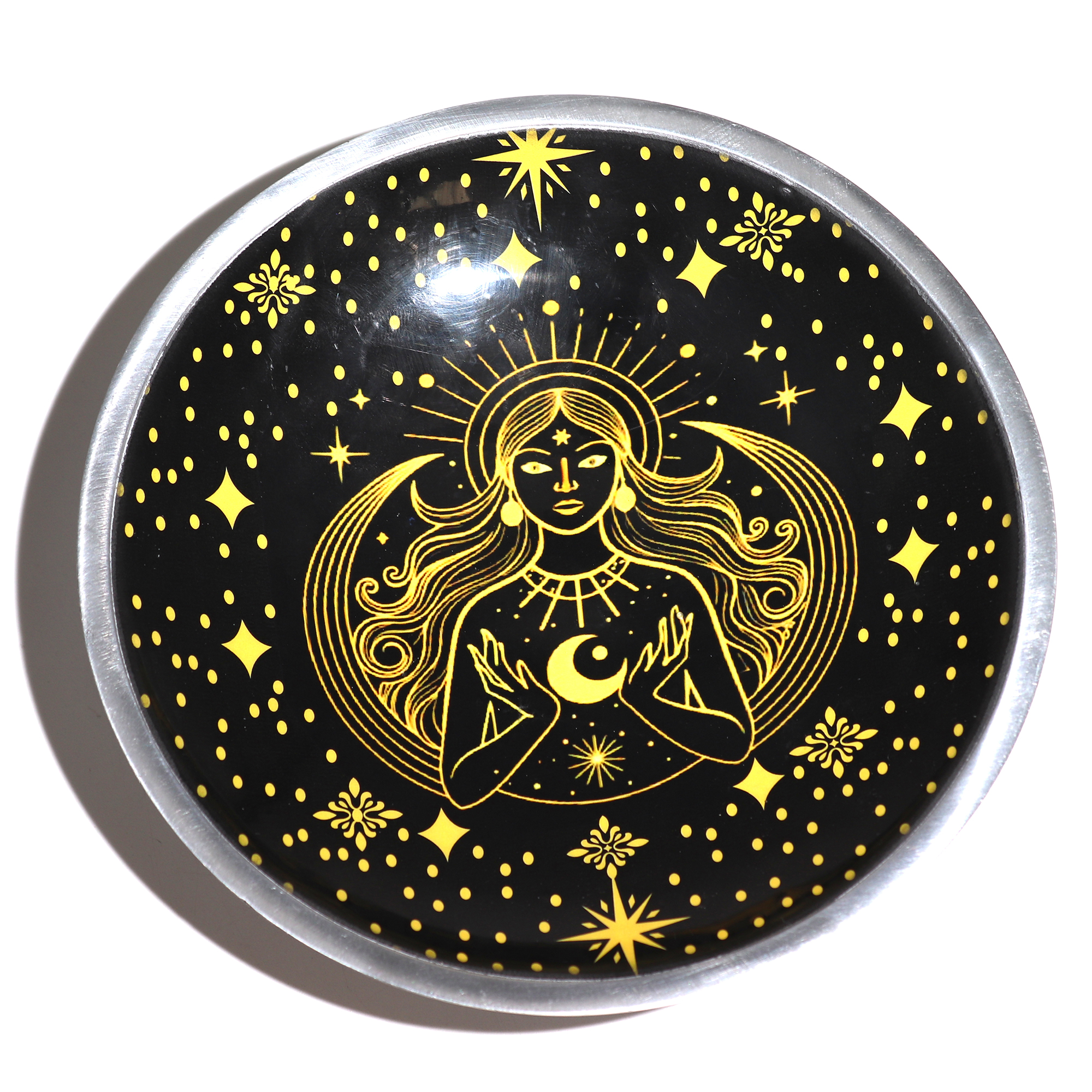 Offrez à vos rituels une touche de puissance et de beauté avec l'assiette d’offrande émaillée à trois pieds – Déesse dorée sur fond noir. Ce magnifique accessoire rituel allie esthétique et symbolisme profond, mettant en avant une déesse dorée sur un fond noir élégant, représentant la féminité divine et la puissance spirituelle.