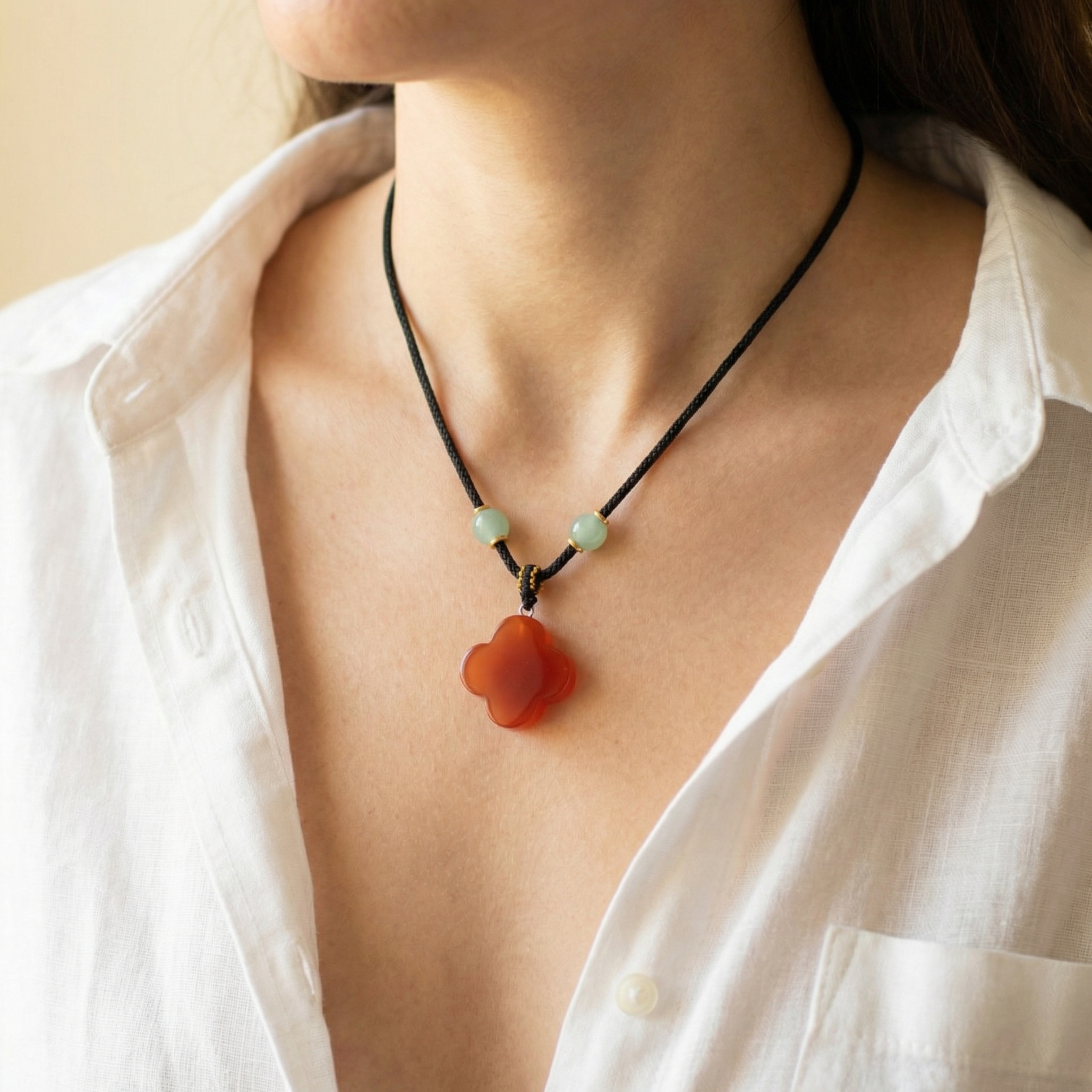 Des pendentifs en pierre soigneusement sculptés en formes symboliques auxquelles les clients s’identifient naturellement. Pensez aux cœurs représentant l’affection, aux lunes symbolisant la transformation, aux croix pour la protection, ou aux formes organiques ludiques comme les champignons qui reflètent un lien avec la nature.