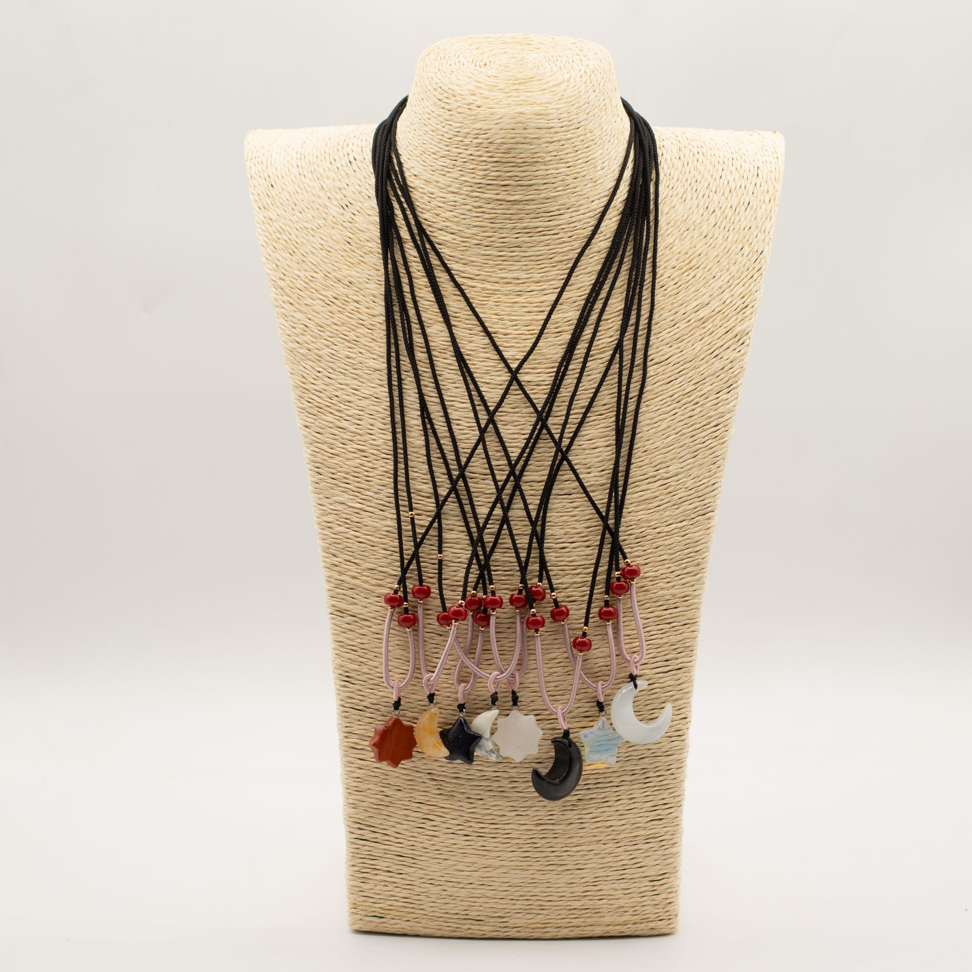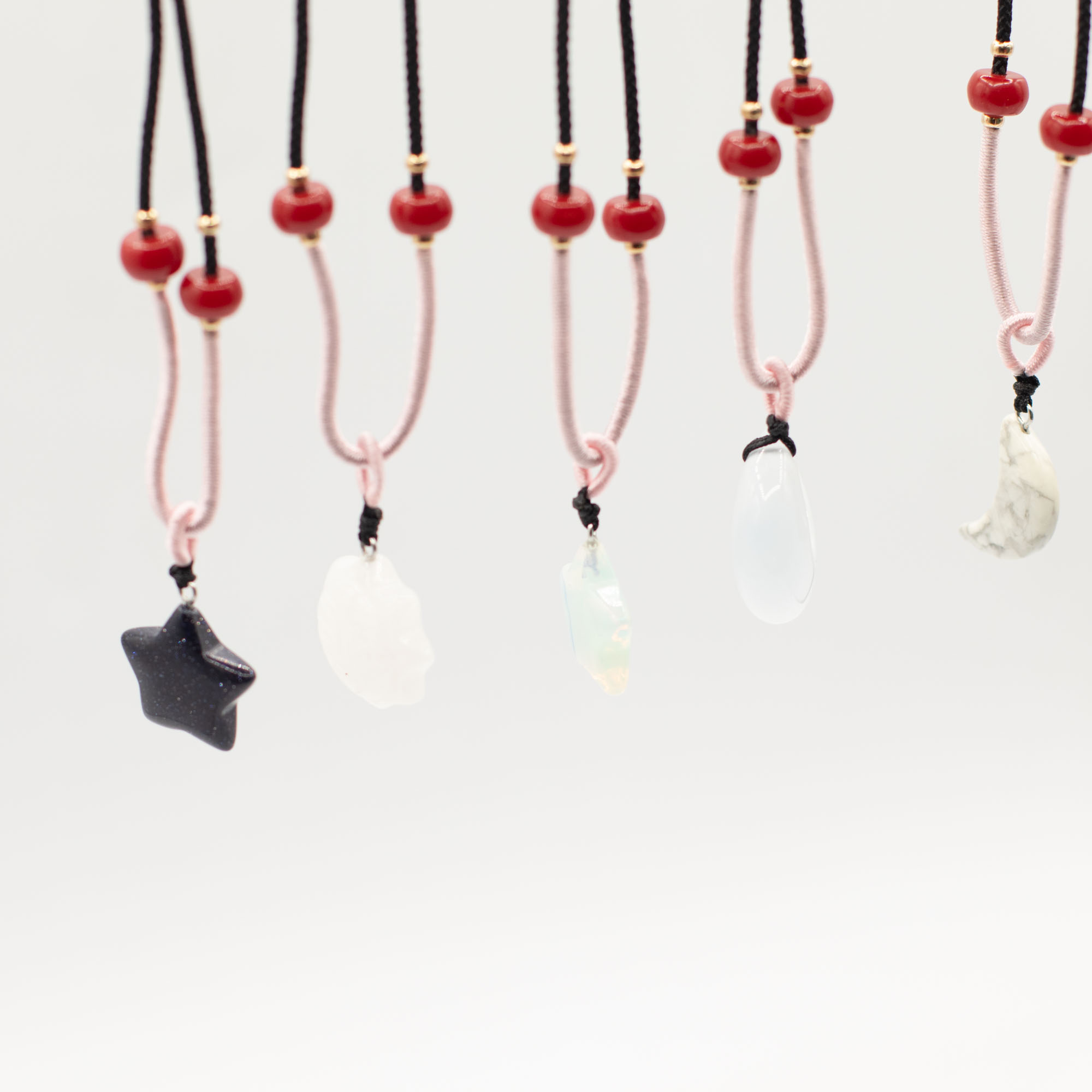 Chaque pendentif est monté sur un collier cordon réglable et agrémenté de subtiles perles décoratives, lui donnant un aspect fait main prêt à être exposé.