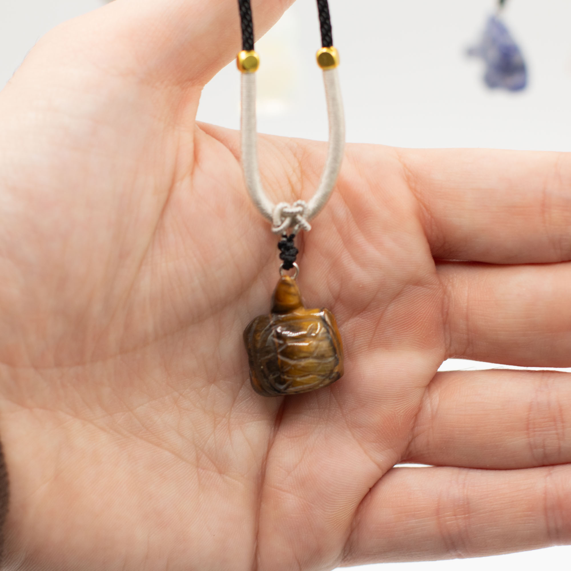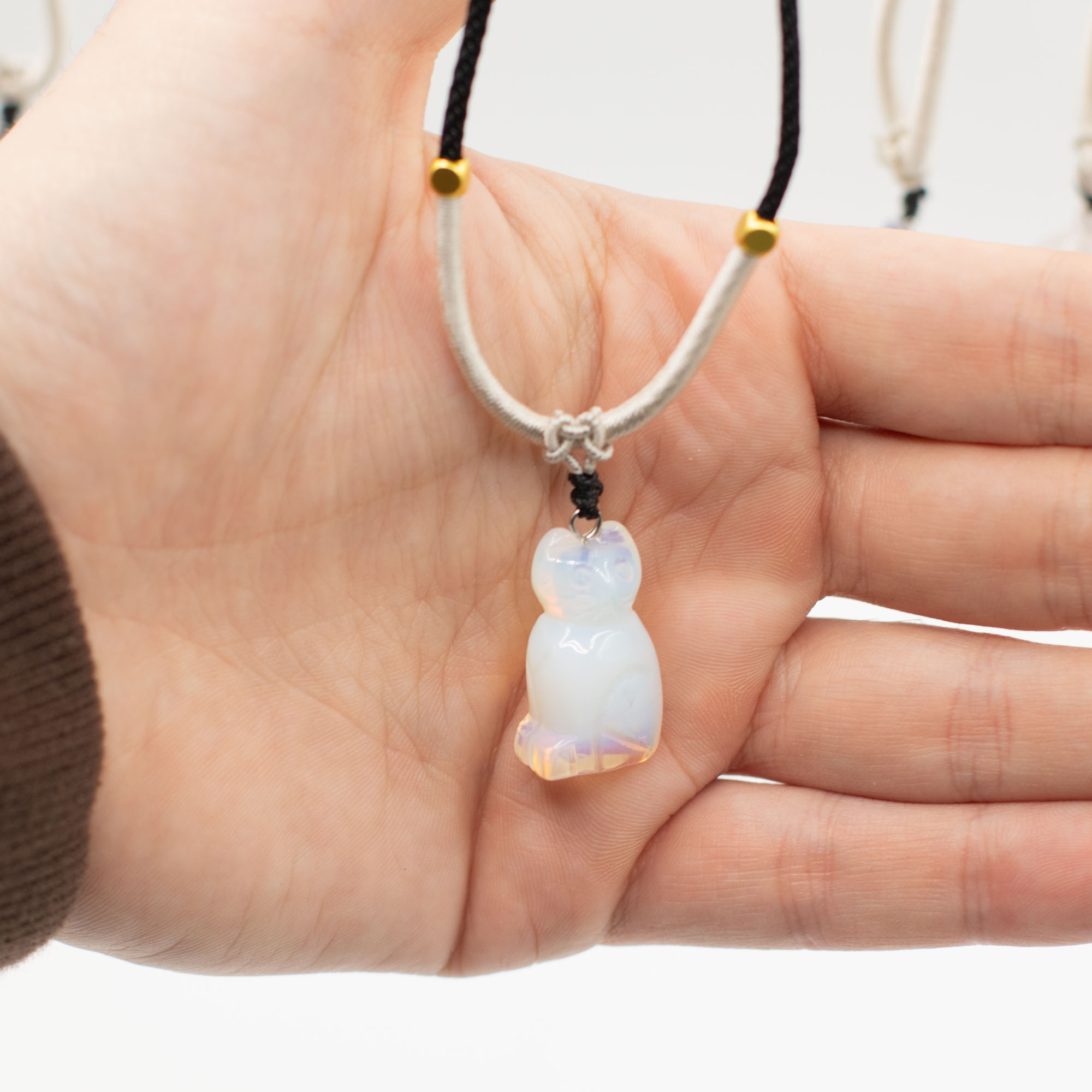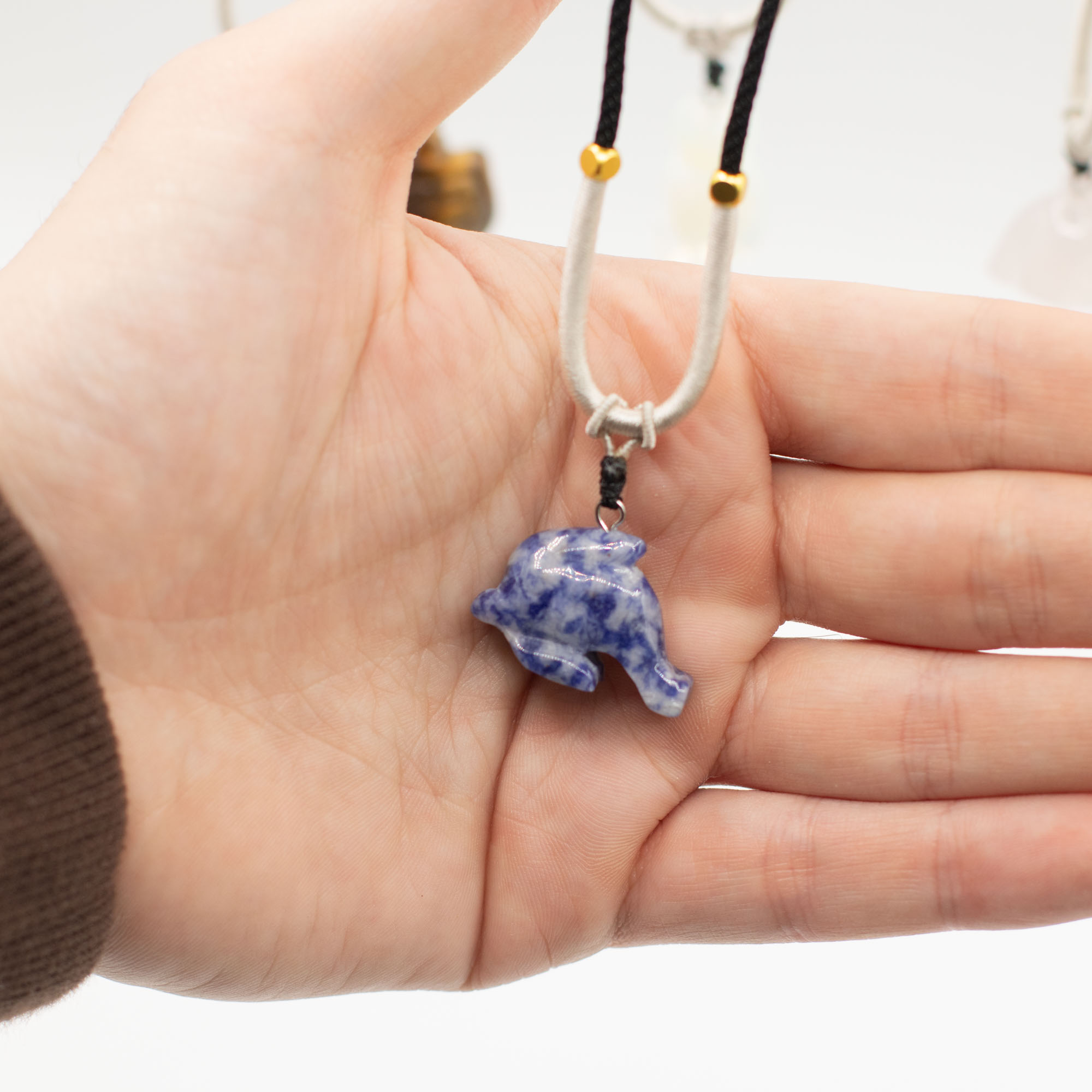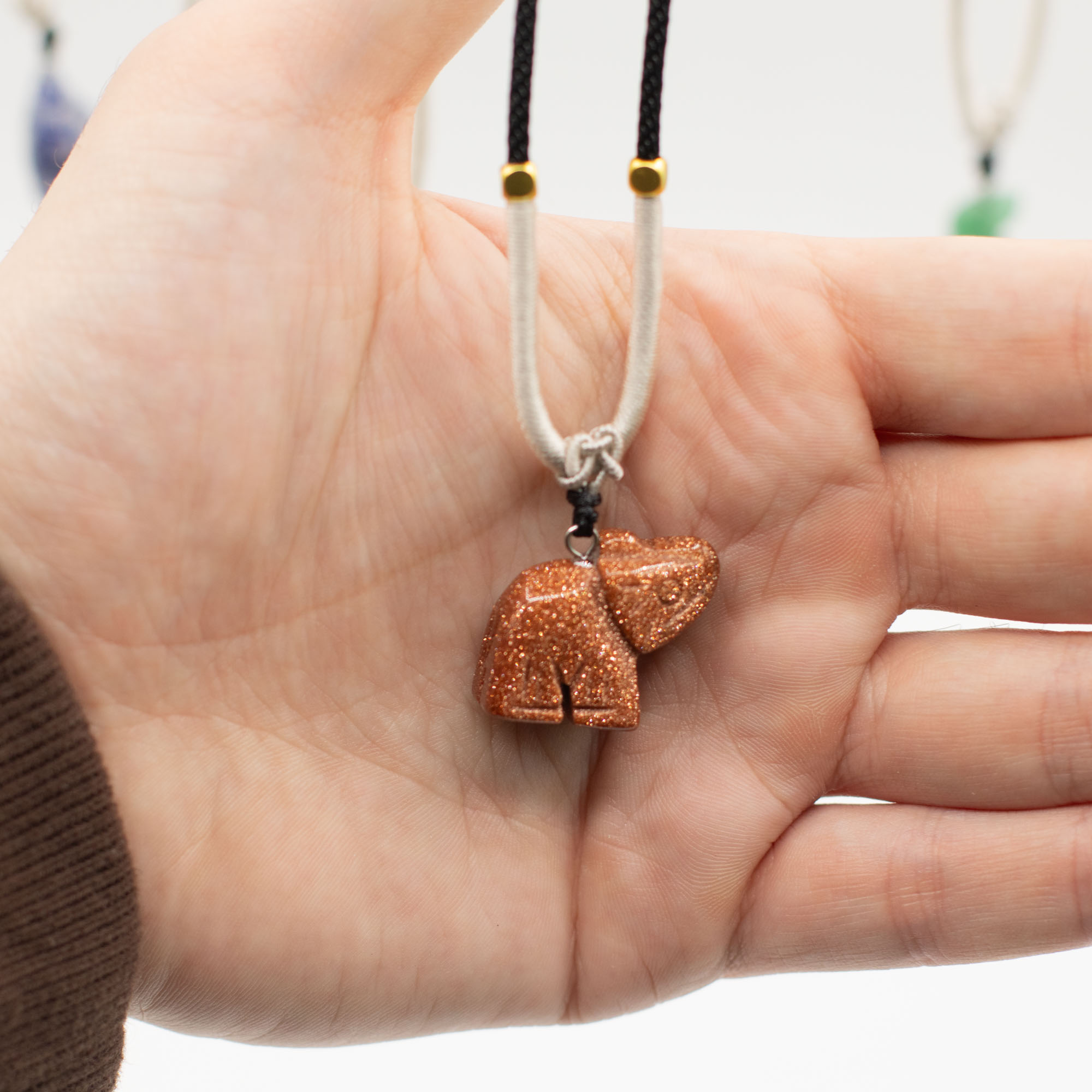 L’assortiment comprend des animaux tels qu’éléphants, tortues, dauphins, chats et d’autres créatures appréciées. Chaque pièce est sculptée dans une pierre naturelle, créant de subtiles différences de couleur, de texture et de finition, ce qui rend chaque collier unique.