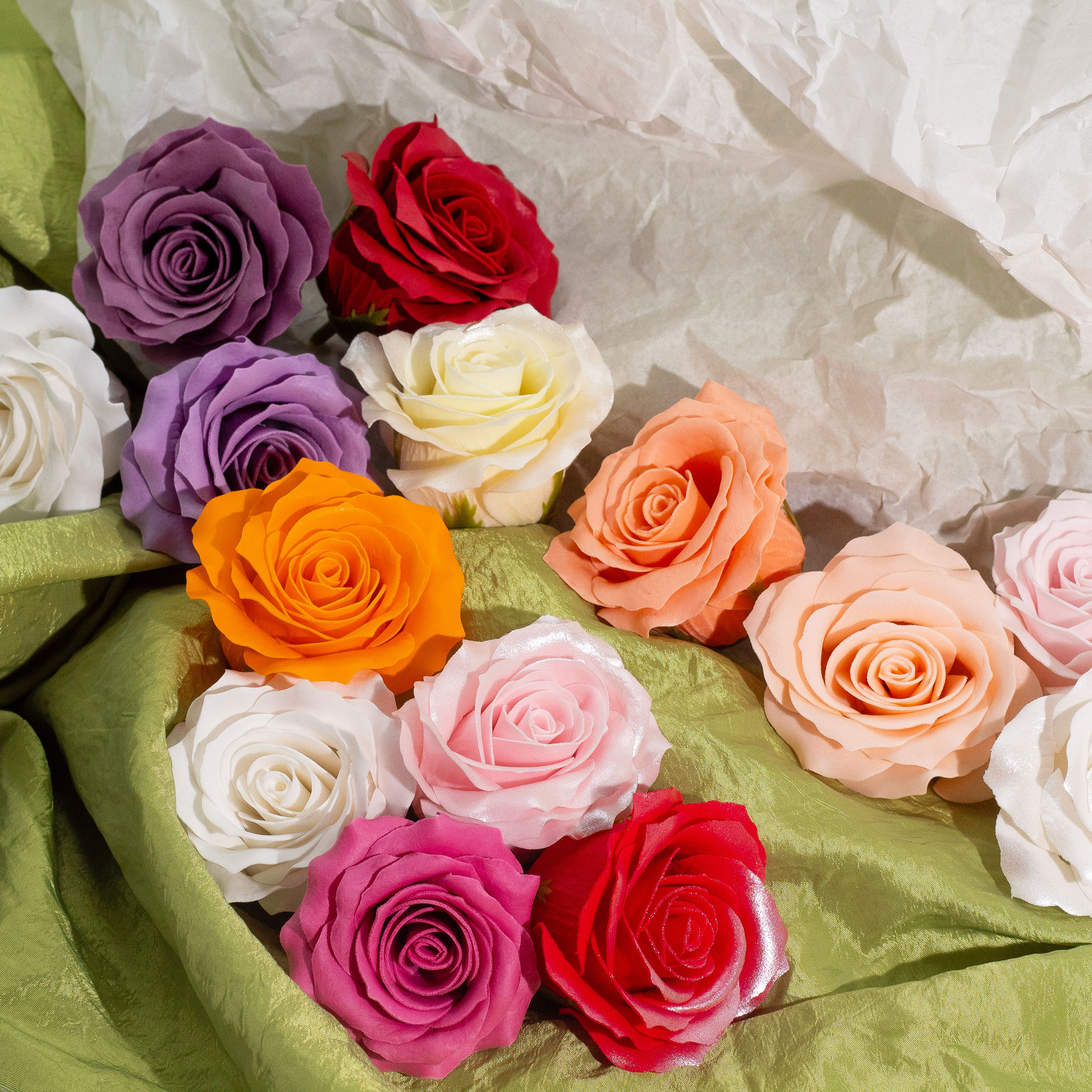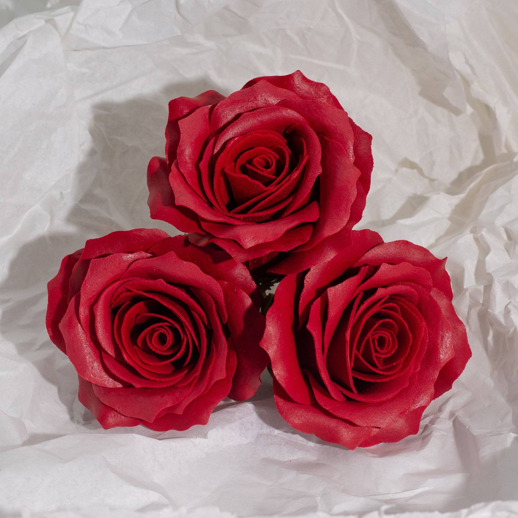 Ces roses sont idéales pour les paniers romantiques, coffrets de luxe ou bouquets de savon spectaculaires. Leur couleur intense les rend parfaites pour la Saint-Valentin, les anniversaires ou des présentations décoratives marquantes. Dans la salle de bain, elles servent à la fois d’élément décoratif et de savon doux pour les mains.
