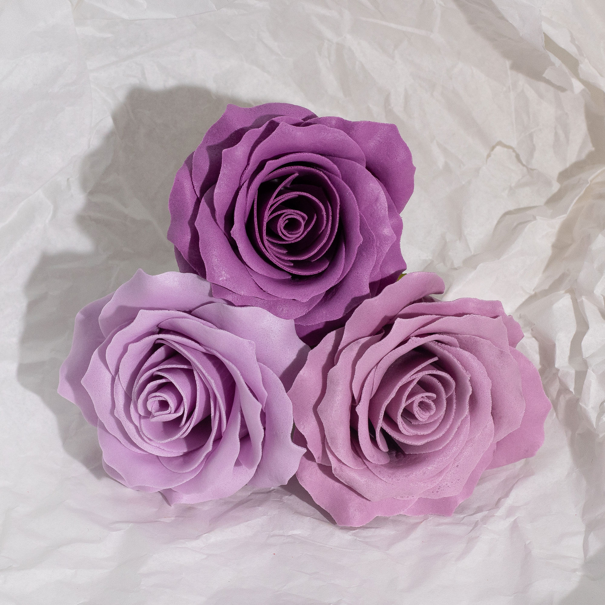 Ces roses peuvent être utilisées dans des bouquets de savon, coffrets cadeaux ou comme accents décoratifs. Leur palette douce met en valeur les présentoirs, tandis que leur parfum léger en fait un choix idéal pour la décoration de salle de bain. Les clients apprécient leur double usage : élément décoratif et savon doux pour les mains.
