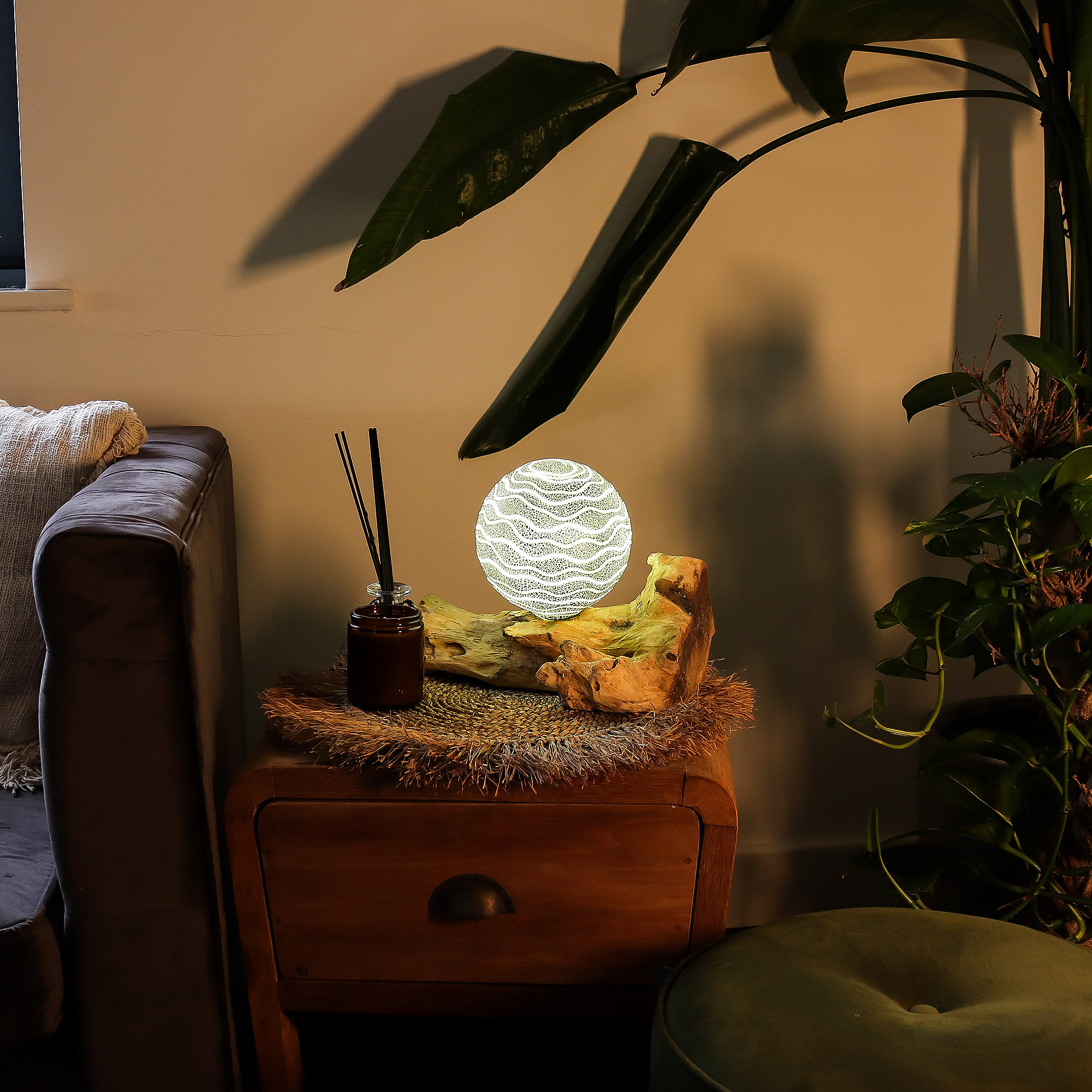 Cette lampe diffuse une lumière calme et lunaire dans la pièce. L’abat-jour Luna Gris repose sur un bois flotté naturel d’Indonésie, combinant lumière douce, texture organique et design sculptural. Elle dégage une atmosphère à la fois terrestre et moderne, faisant de chaque pièce un objet décoratif facile à intégrer dans n’importe quel intérieur.