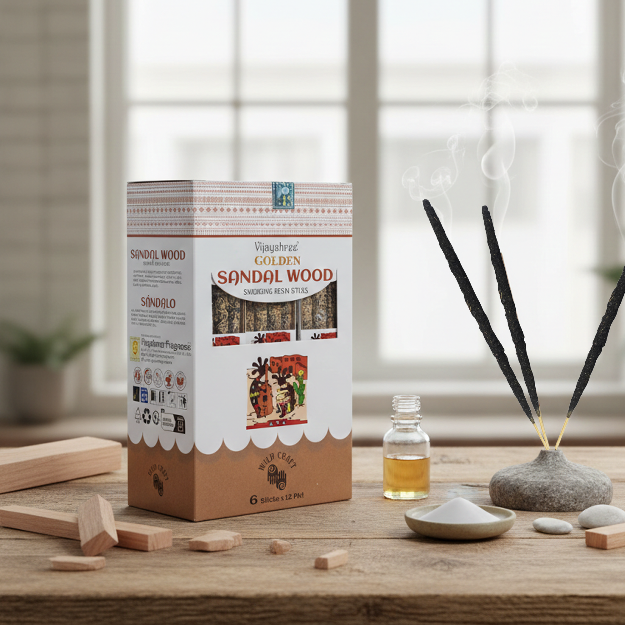 Chaque pack de gros contient 12 sets, avec 6 bâtons d’encens en résine naturelle par set (environ 30 g au total). Le bois de santal est traditionnellement apprécié pour son parfum riche et stable, souvent associé à la méditation, la clarté et la création d’une atmosphère équilibrée. Le mélange de résine dorée renforce la chaleur des notes boisées, donnant au parfum un caractère plus complet et durable.