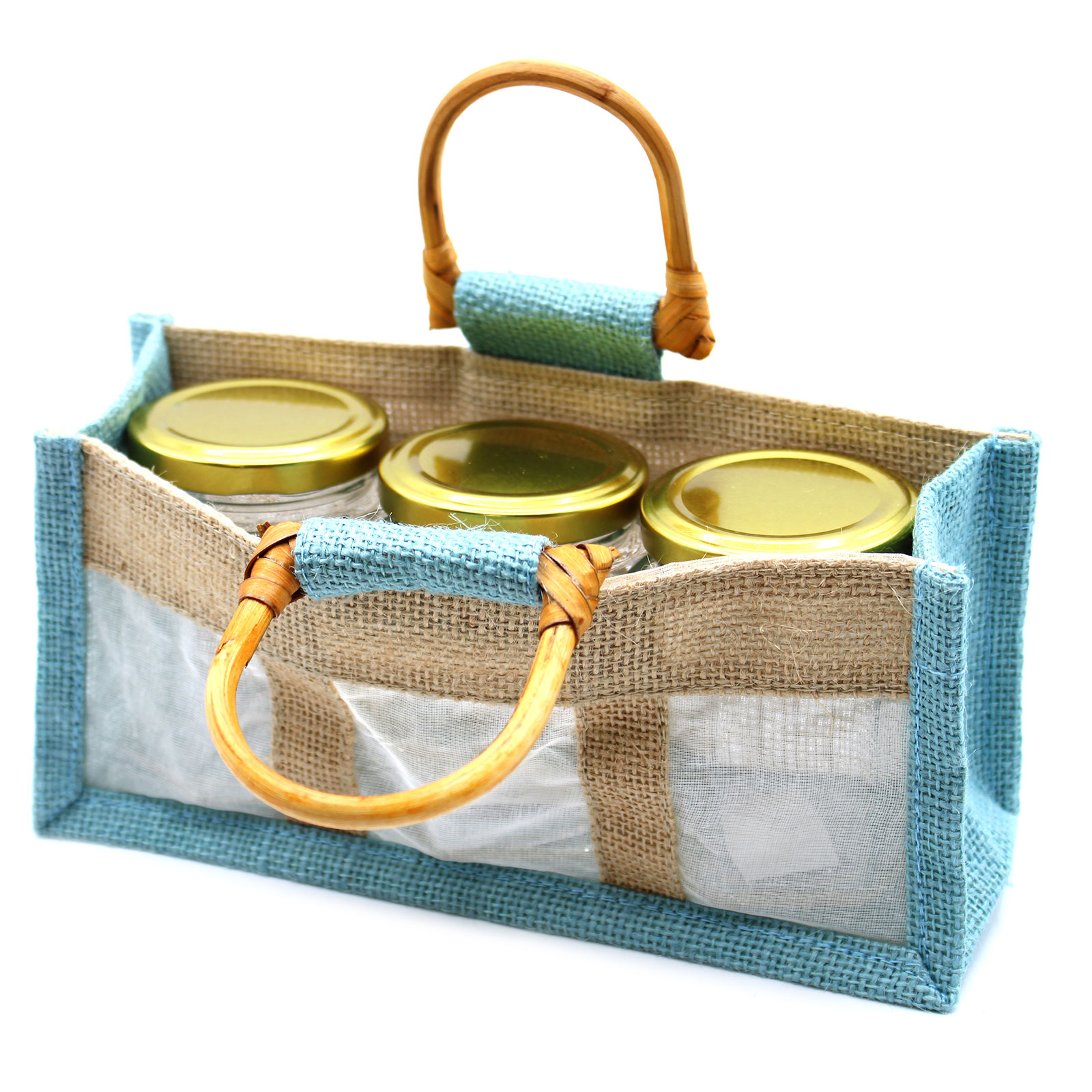 Vente en gros de sacs cadeaux en jute avec poignées et fenêtre. Ces sacs-cadeaux écologiques incroyablement populaires sont parfaits pour emballer vos produits (ou les nôtres) et ajouter de la valeur. Créez un cadeau instantané en les pré-remplissant avec de beaux objets. Idéal pour les pots de confiture, etc.