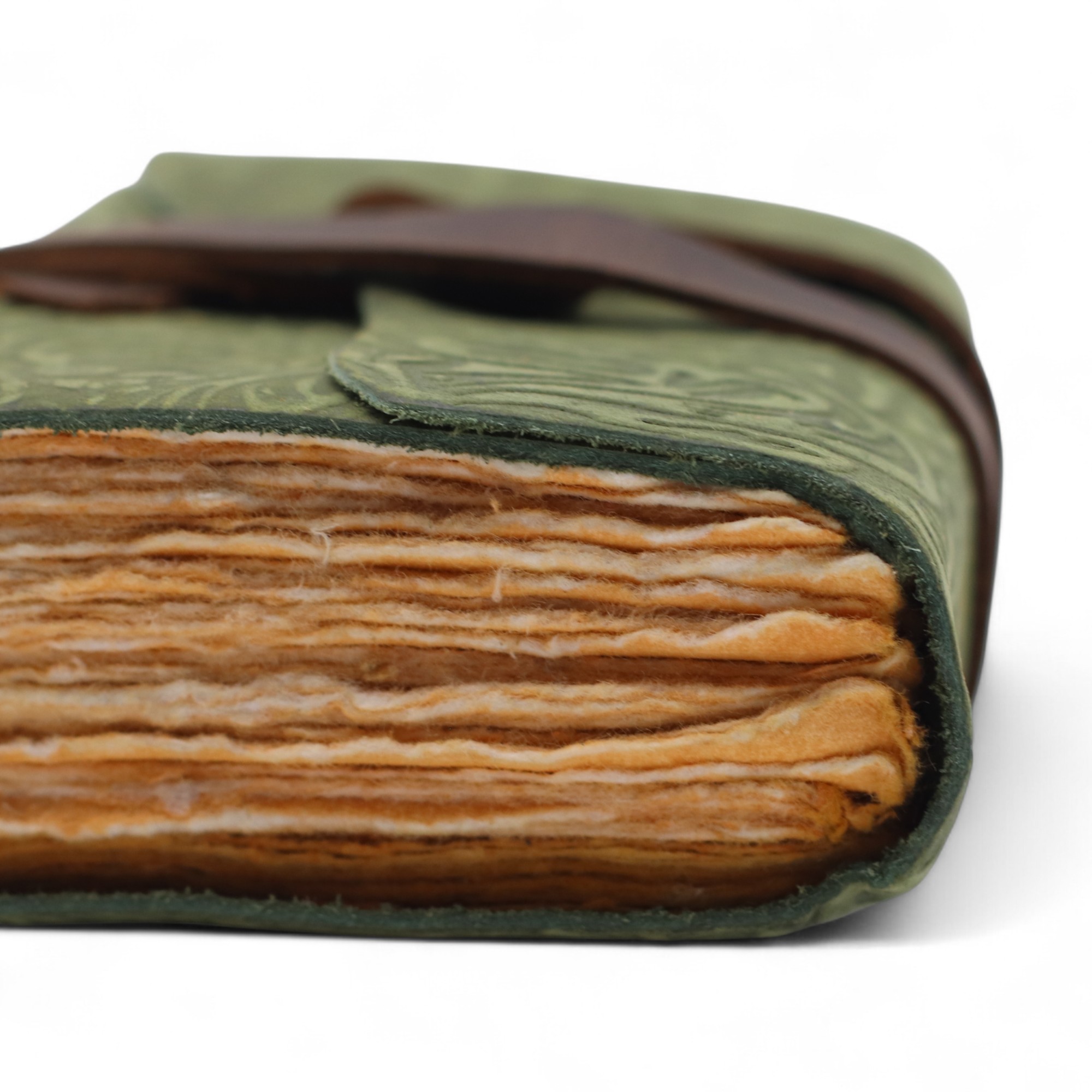 Fabriqué en cuir souple et rempli de pages vierges à bord frangé, il est idéal pour écrire, dessiner ou consigner ses réflexions. Vous pouvez le positionner dans des collections centrées sur la pleine conscience, le bien-être ou les thèmes ésotériques.