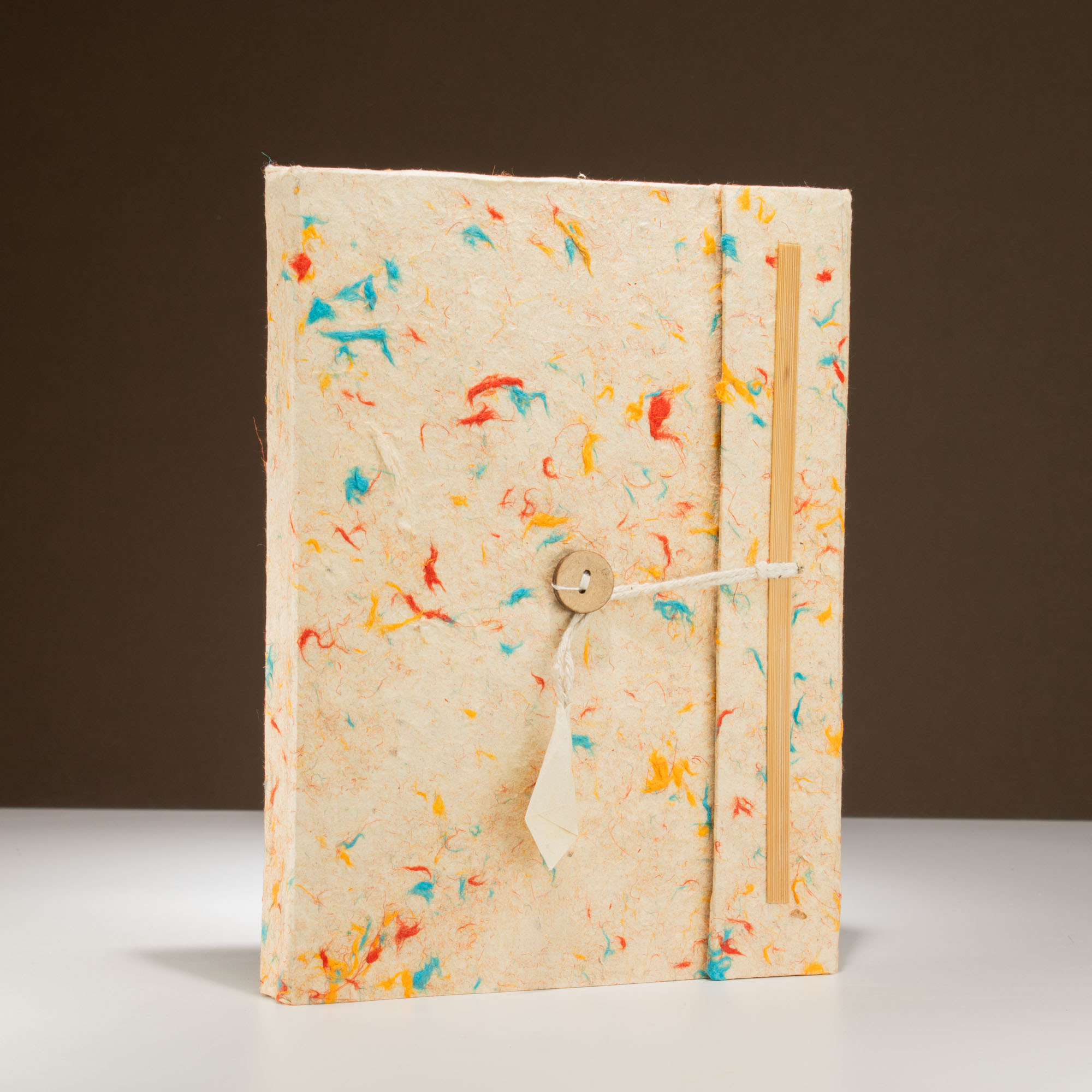 Fabriqué à partir de fibres de coton recyclées, ce grand carnet Lokta présente une couverture naturellement mouchetée aux tons doux et naturels.