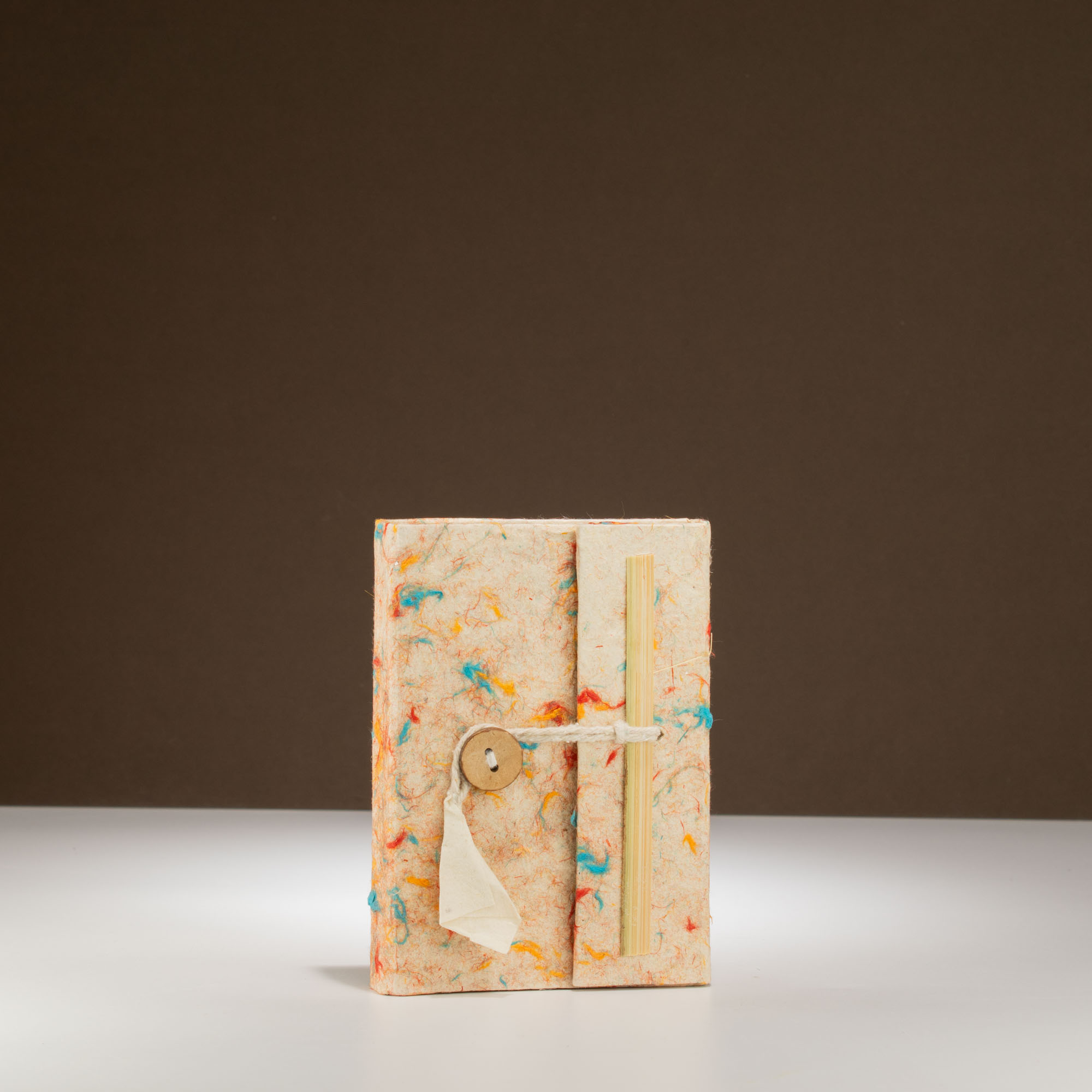 Ce mini carnet allie à la perfection simplicité et durabilité. Avec sa couverture en fibres de coton de couleurs mélangées et en Lokta naturel, chaque carnet présente un aspect marbré distinctif, un aspect artisanal et personnel.