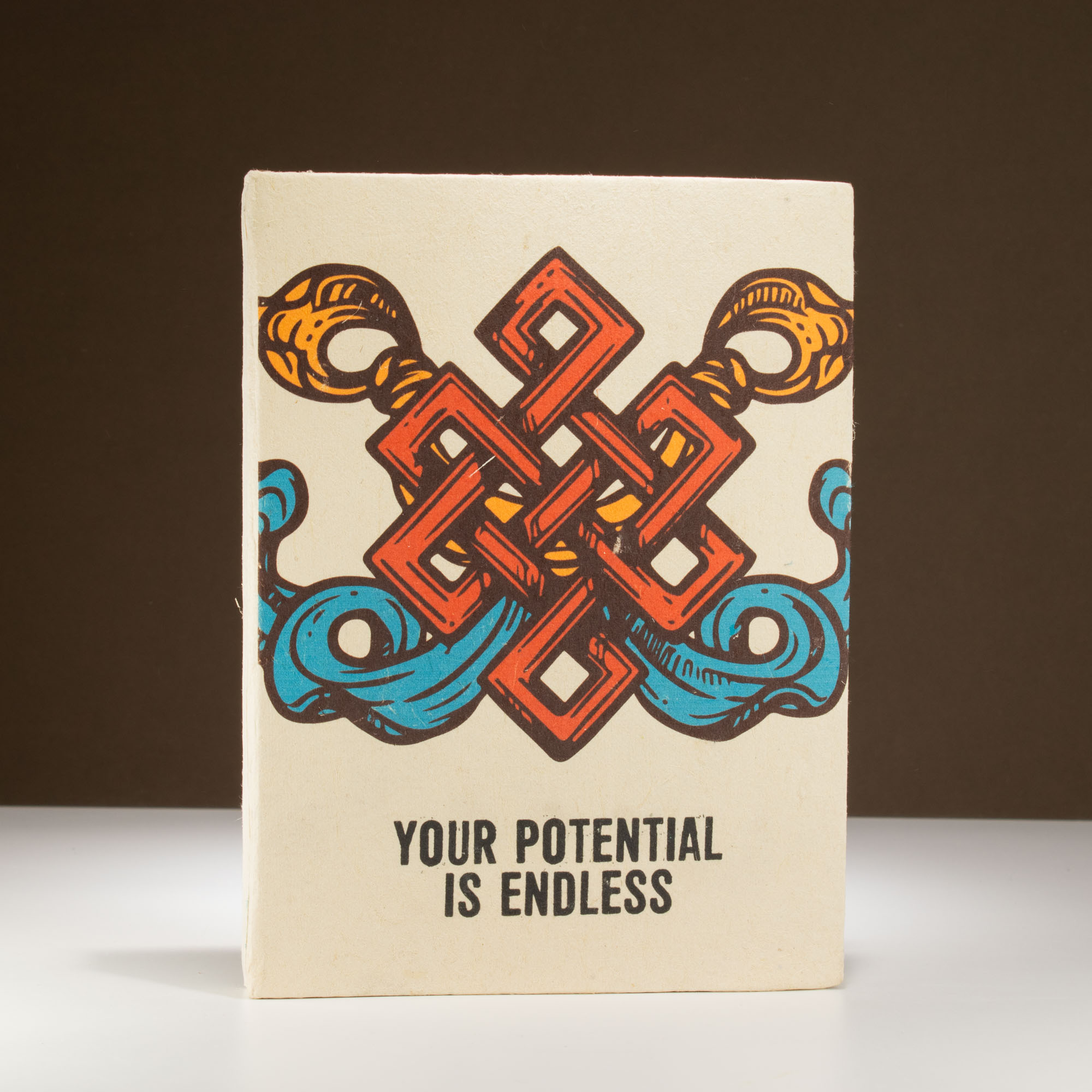 Orné d'un motif rouge et orange audacieux et de la phrase « Votre potentiel est infini », il encourage la confiance en soi tout en offrant un attrait artisanal de haute qualité.
