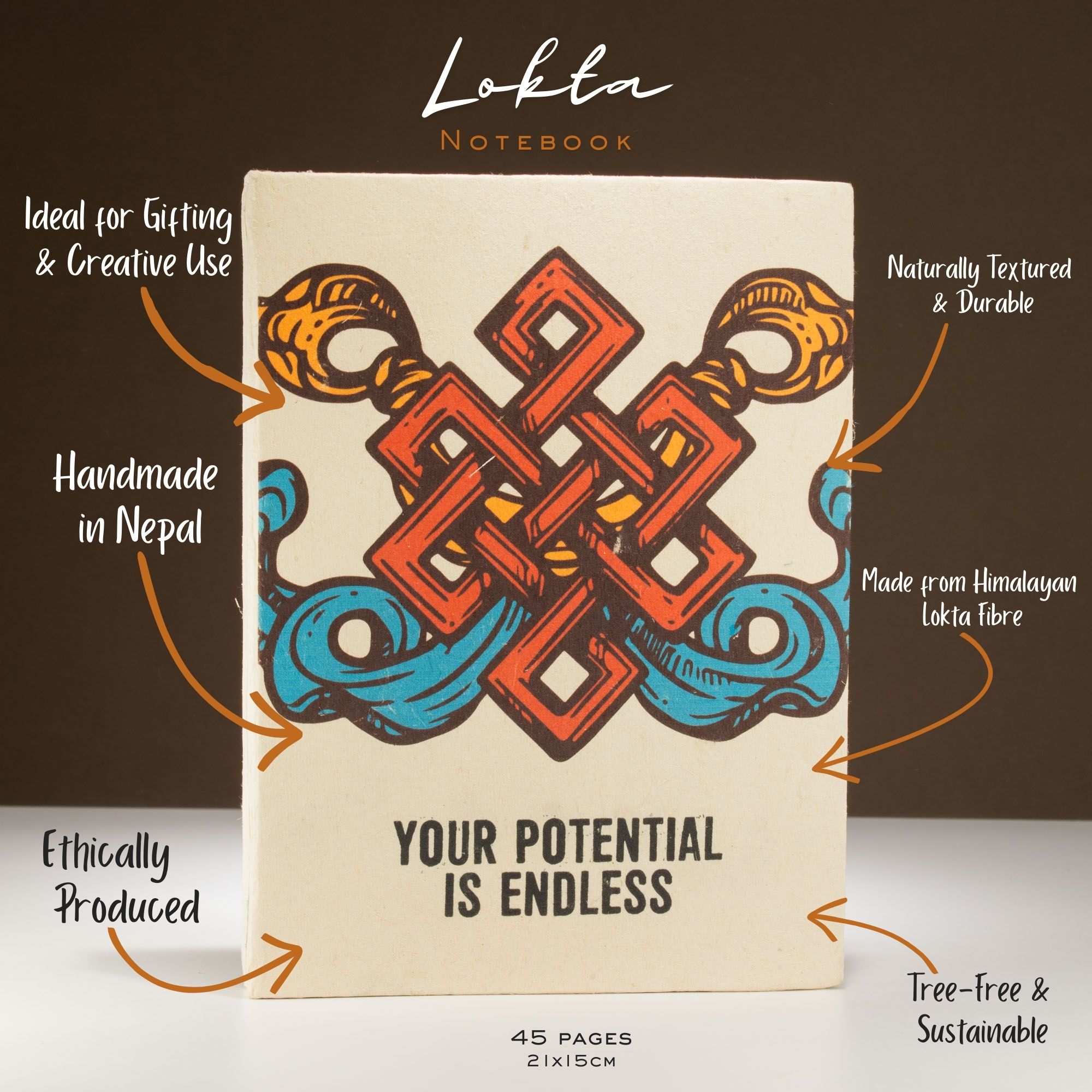 À l'intérieur, 45 pages blanches en magnifique papier Lokta sont idéales pour prendre des notes, exprimer ses idées ou tenir un journal.