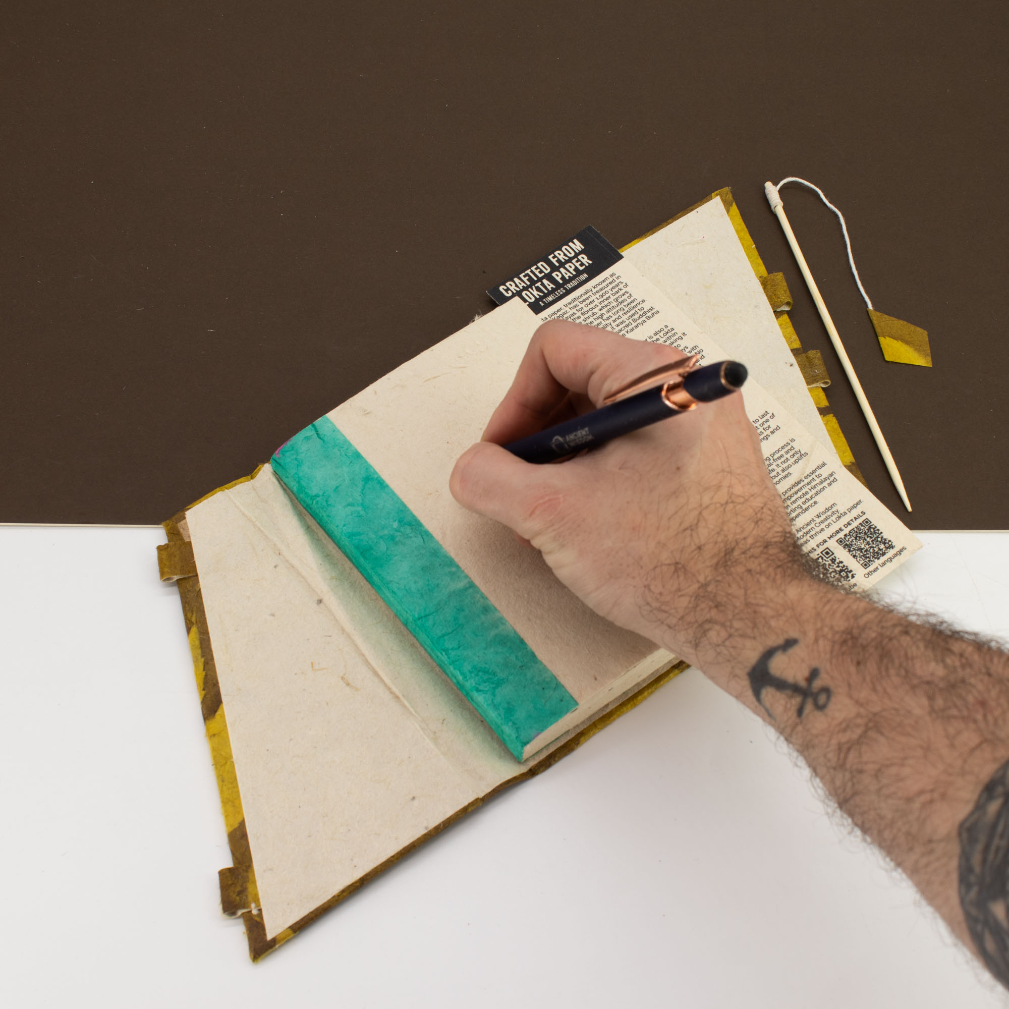 À l’intérieur, 45 pages faites main offrent une surface d’écriture tactile avec variations naturelles entre les feuilles, idéale pour listes, notes, croquis ou pensées quotidiennes.
