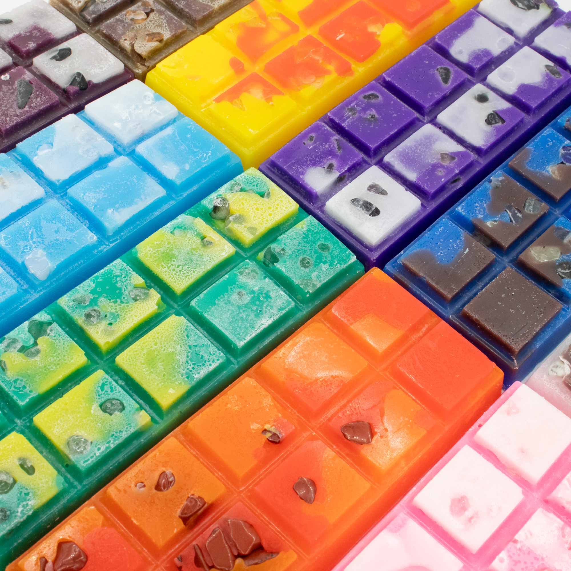 Chaque barre contient 10 segments détachables, combinant couleur, parfum et pierre naturelle dans un design cohérent.