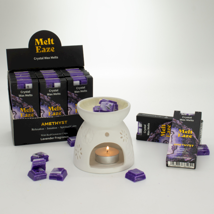 Les Fondants Parfumés Melt Eaze 50g Lavande sont conçus pour les clients en quête de calme et qui repartent avec bien plus. La douce fragrance florale crée une sensation immédiate de détente, tandis que les éclats cachés d’Améthyste, associés au calme, à l’intuition et à l’équilibre spirituel, donnent au produit une signification plus profonde.