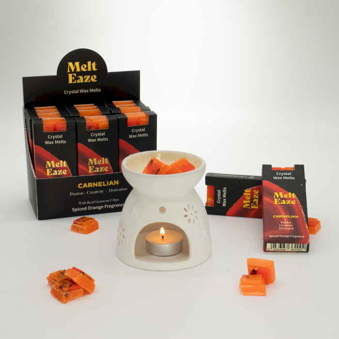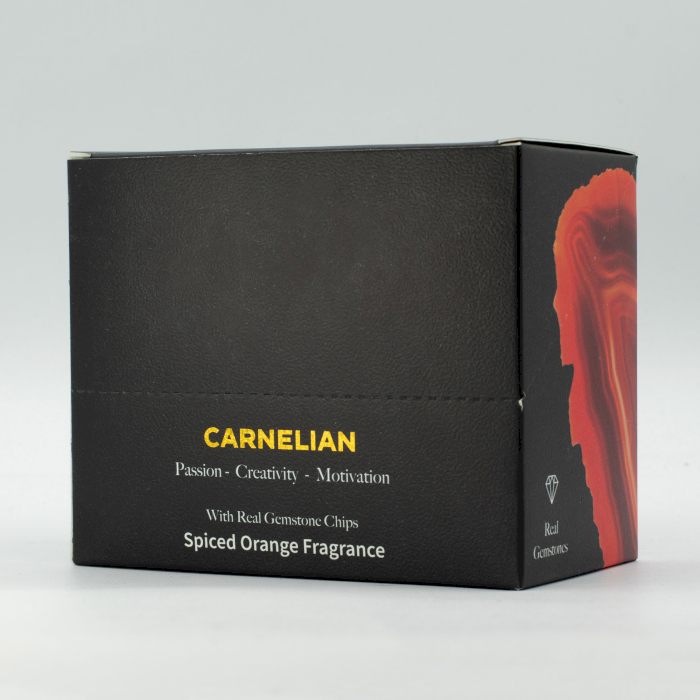 Lorsque la cire fond, des éclats de Cornaline apparaissent, associés à la passion, la créativité et la motivation, ajoutant une dimension énergique et expressive.