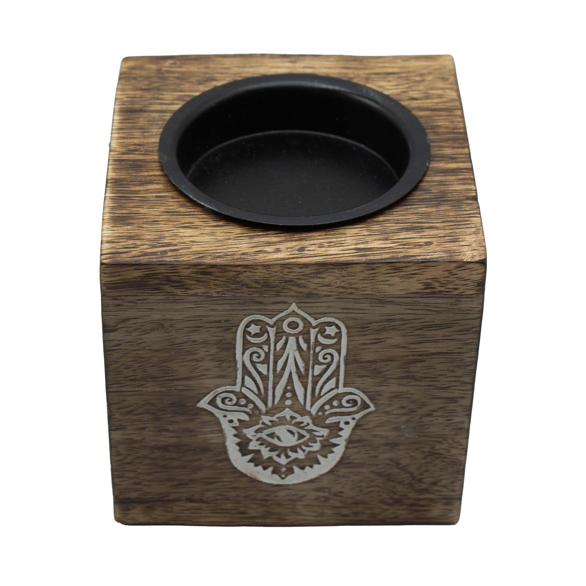 Ce brûleur est décoré du symbole Hamsa, traditionnellement associé à la protection et à l’énergie positive. Confectionné en bois de manguier, il allie une finition chaude et naturelle à un motif gravé bien défini.