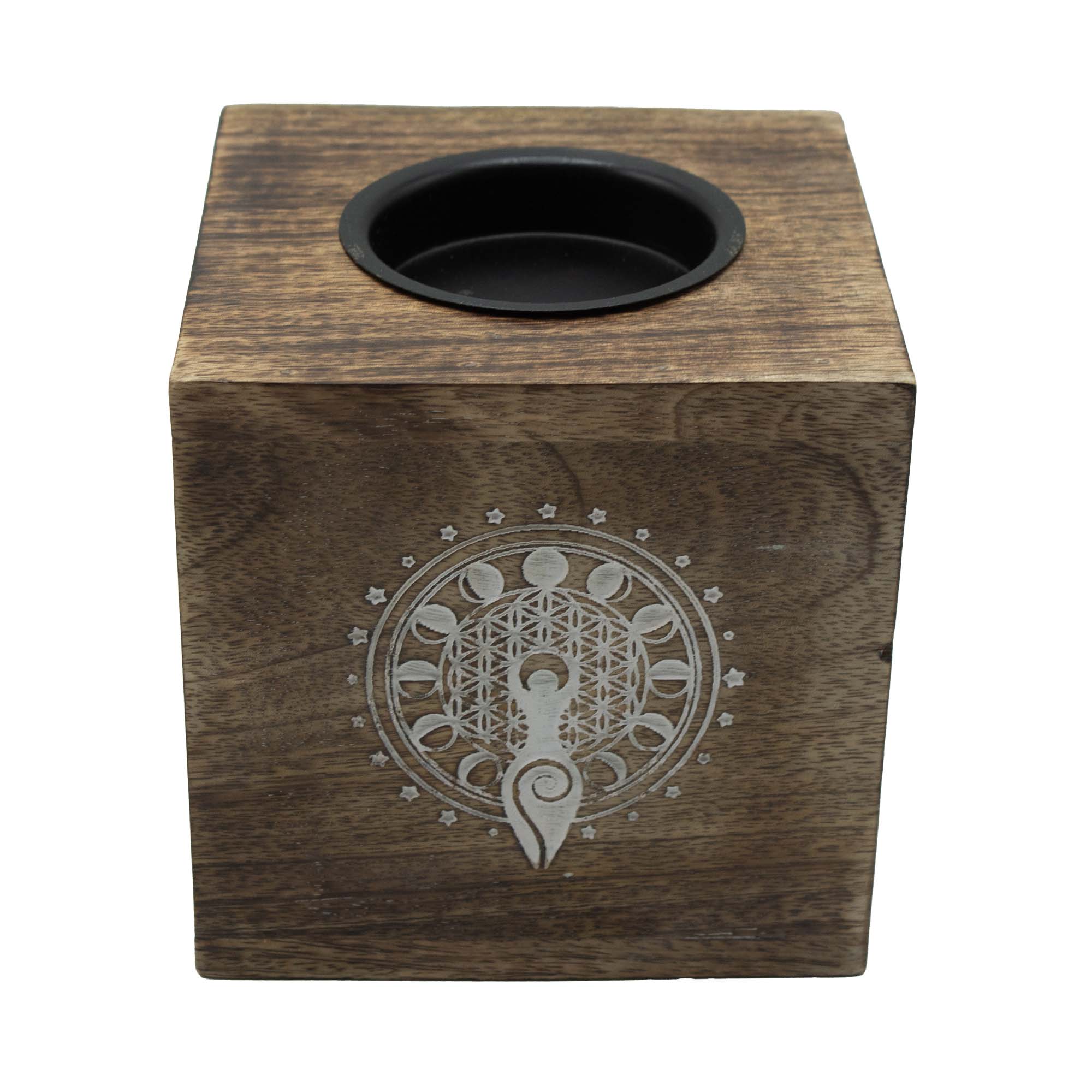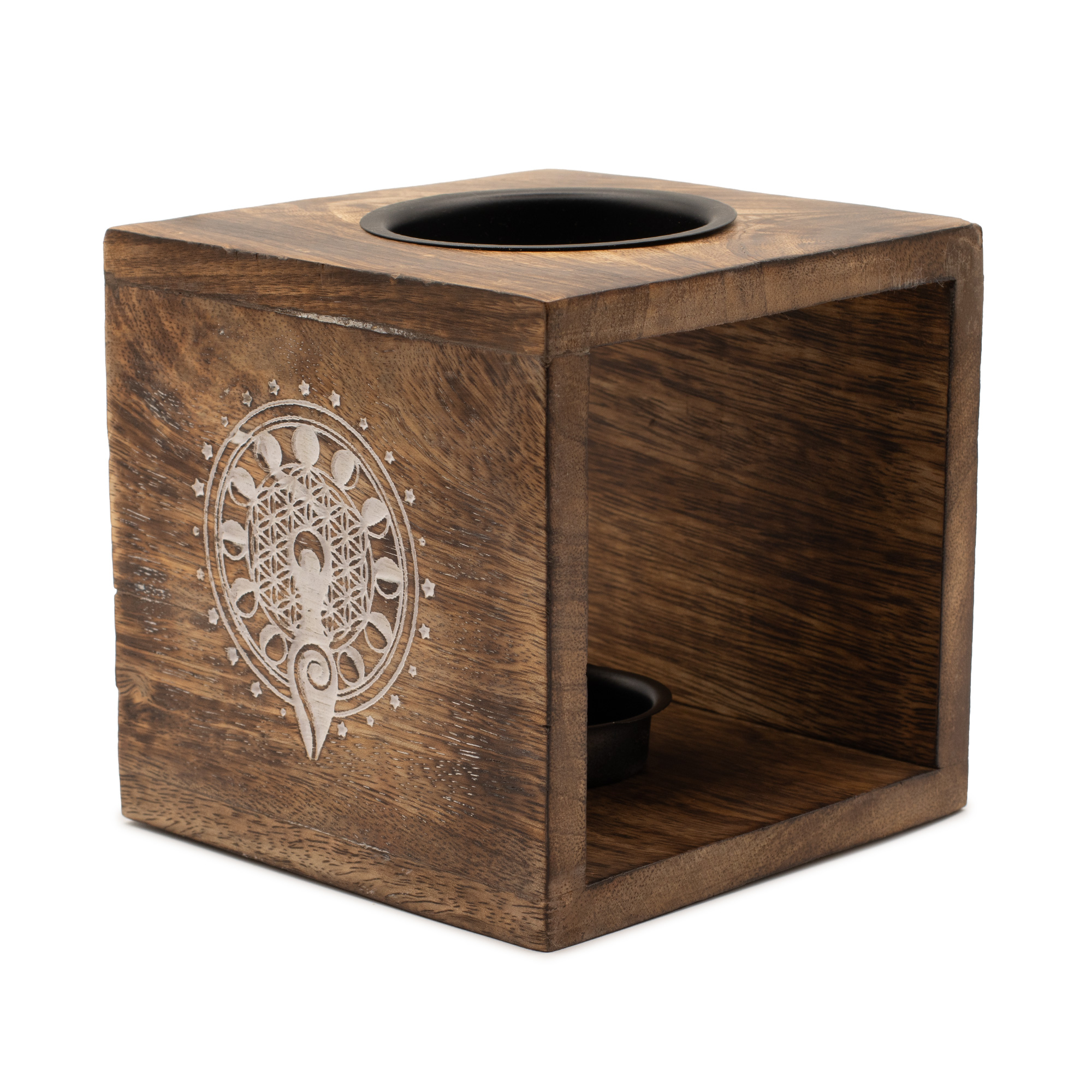 Ce grand brûleur met en avant un motif de Déesse de la Lune, souvent associé à l’intuition, aux cycles et à l’énergie féminine. Confectionné en bois de manguier, il possède une finition naturelle et chaleureuse qui adoucit le motif gravé et rend chaque pièce unique.