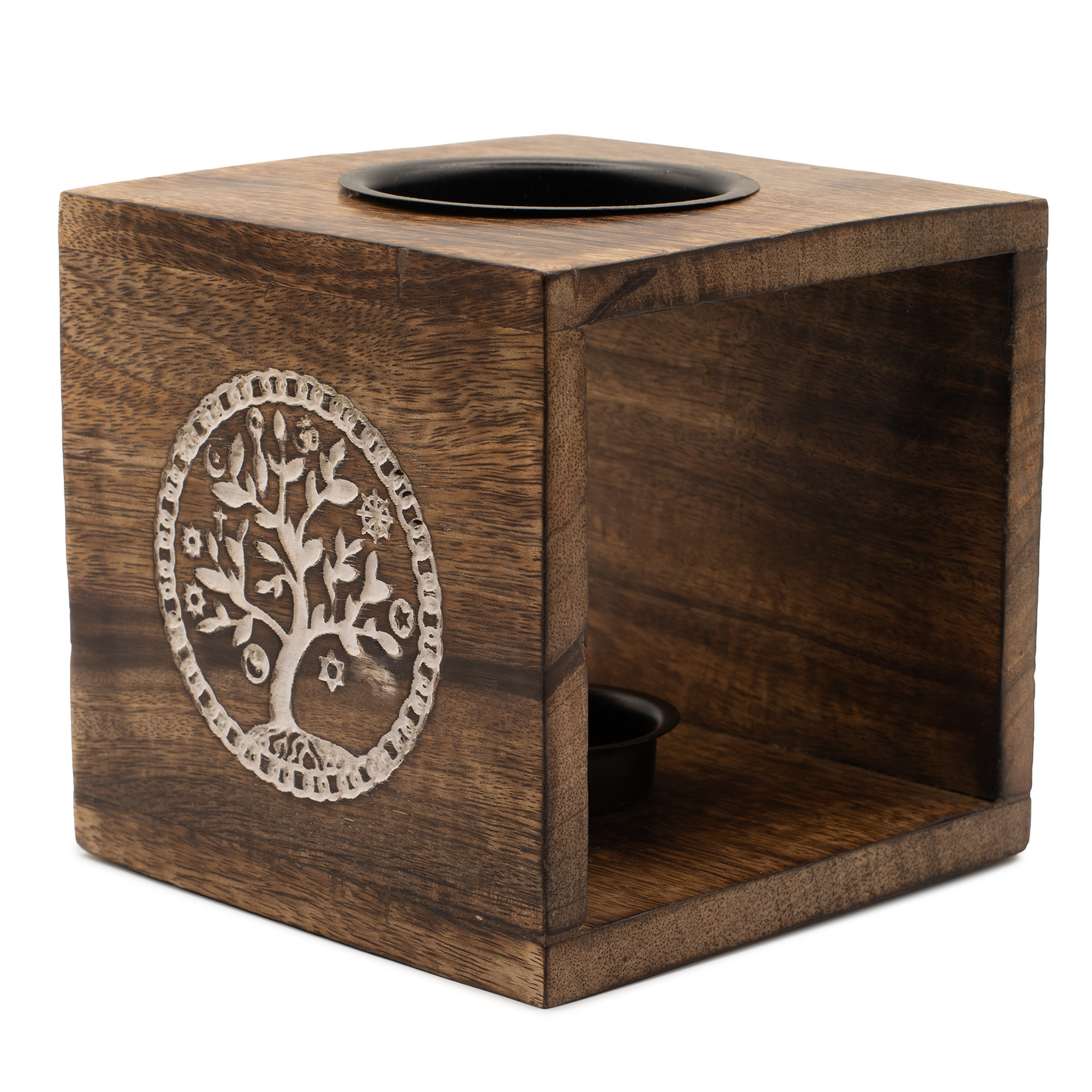 Avec son motif Arbre de Vie, ce grand brûleur symbolise la croissance, la connexion et la continuité. Fabriqué en bois de manguier, chaque pièce présente des variations naturelles qui ajoutent caractère et chaleur.