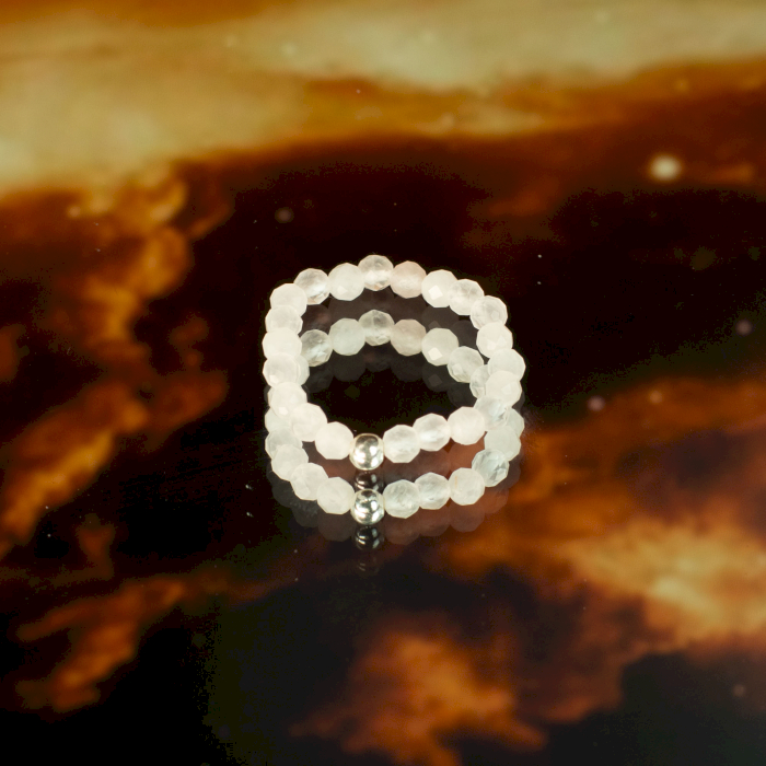 Inspiré par les Lampades, nymphes du monde souterrain, le design évoque passion, ombre et chaleur intérieure, ajoutant une touche sombre et lumineuse à la collection. Les bagues sont élastiques, adaptées à la plupart des tailles, avec de véritables pierres précieuses et des perles plaquées argent.