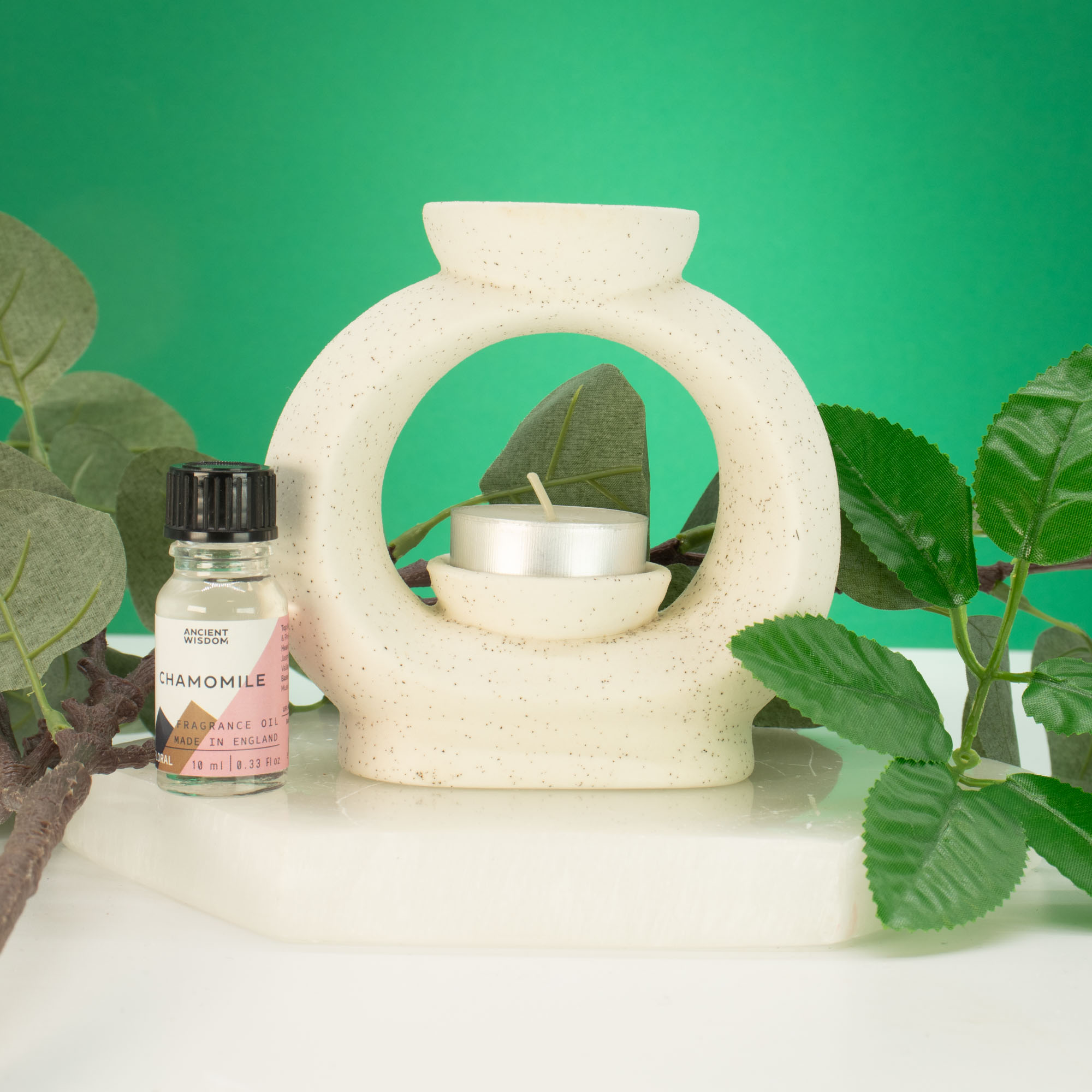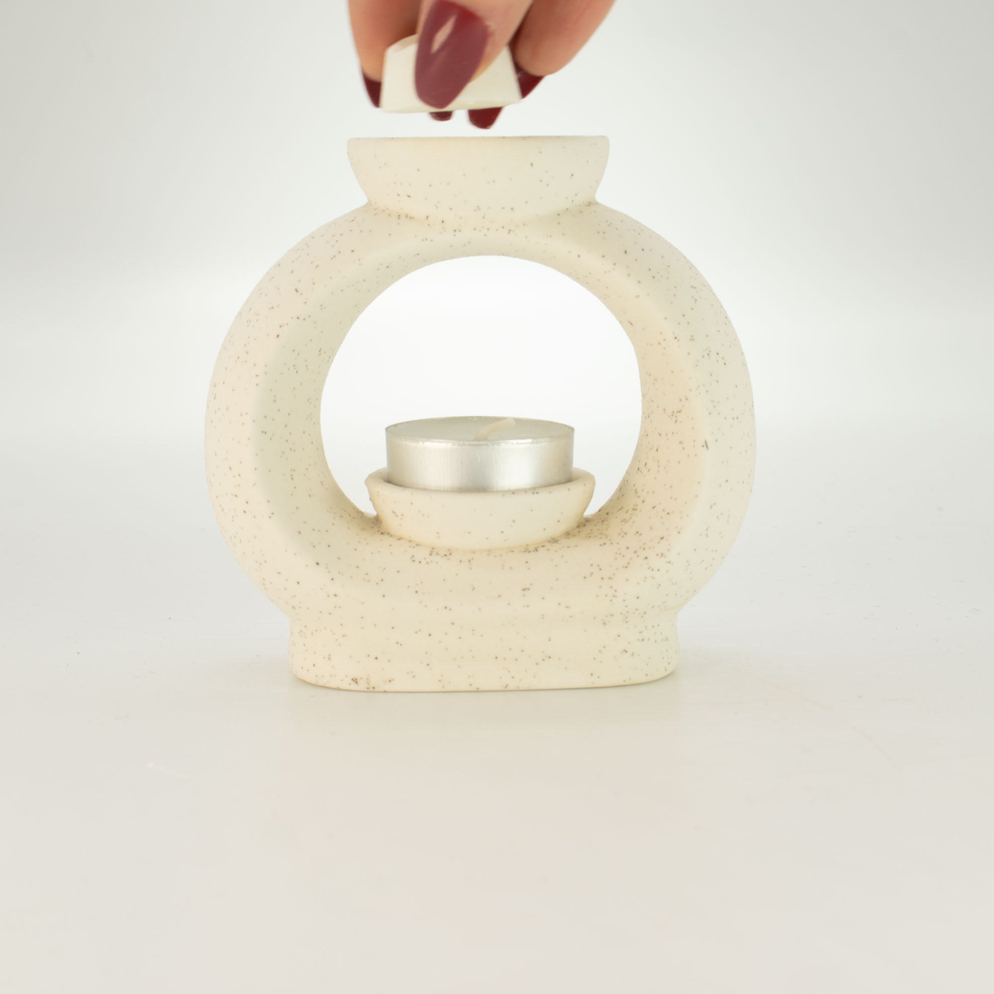 Le Brûleur à Huile Zen en Céramique – Grand galet ovale – Blanc moucheté est une pièce de taille imposante conçue pour valoriser les présentations premium dans les univers bien-être, spa et décoration contemporaine.