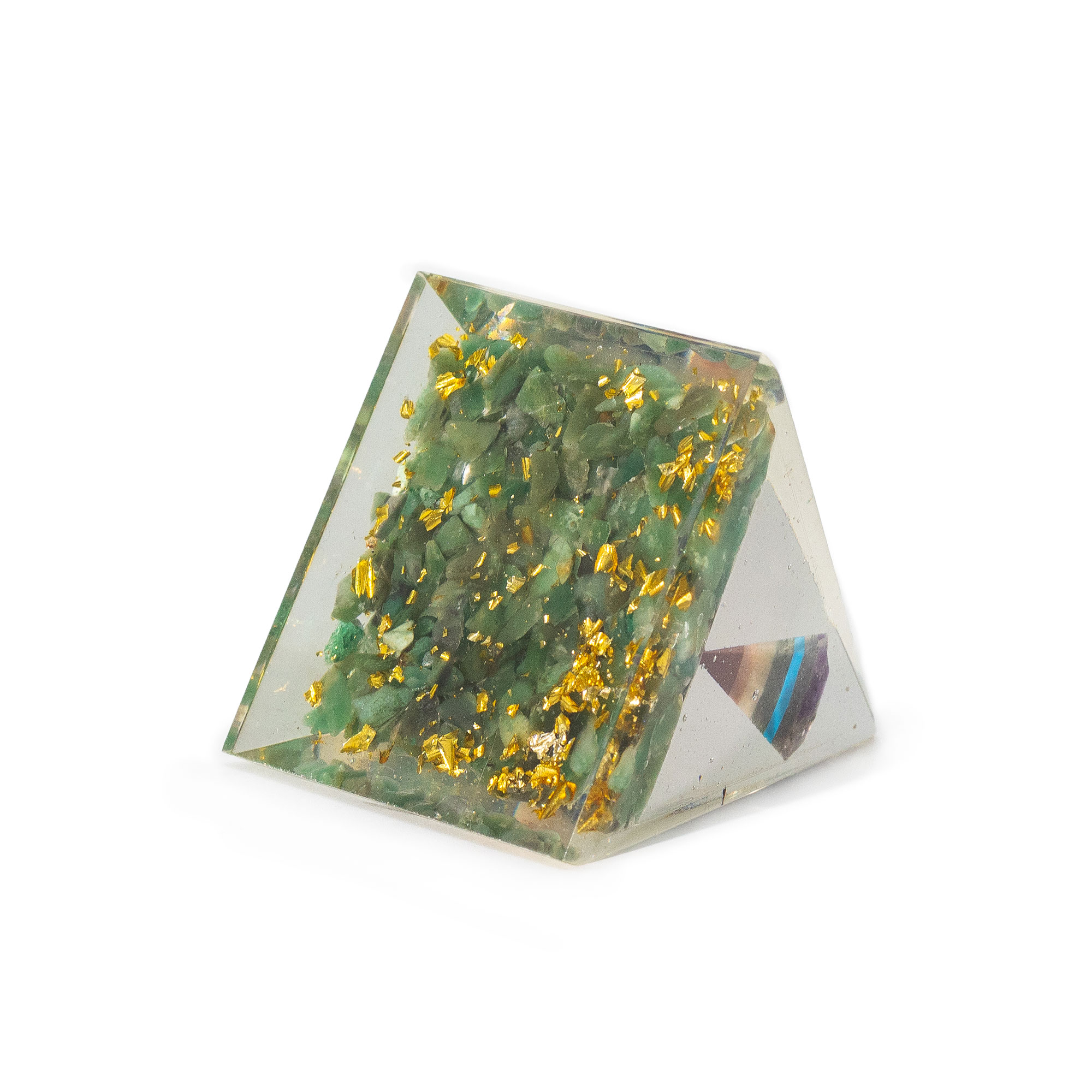 Apportez une touche d’équilibre et de renouveau à votre collection de cristaux avec la Pyramide d’Orgonite Moyenne – Pendule avec Pépites d’Aventurine Verte. Fabriquée artisanalement à partir de résine, de métal et de véritables pierres précieuses, cette pièce présente un pendule suspendu entouré de cristaux d’aventurine verte, symbole de prospérité, de guérison émotionnelle et d’harmonie.