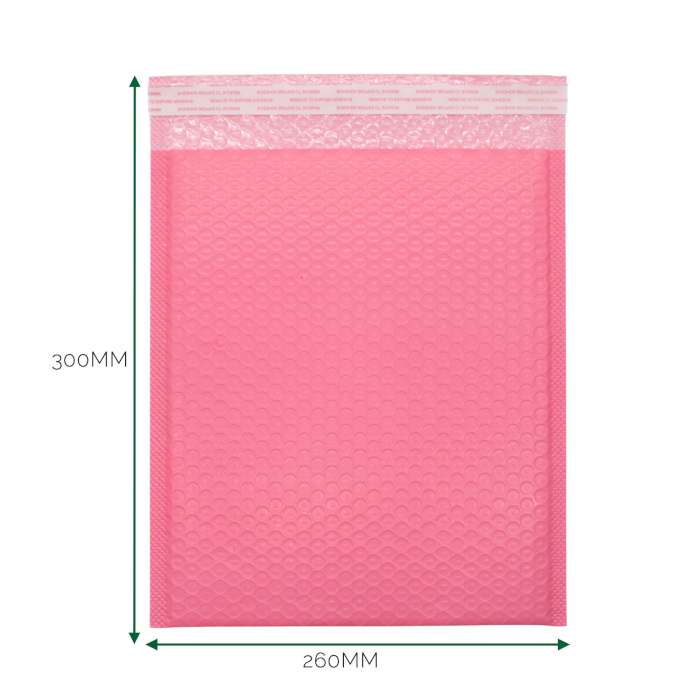 Ces enveloppes bulles polyéthylène roses 260 × 300 mm sont conçues pour les commandes plus importantes nécessitant à la fois un impact visuel et une manipulation fiable. Leur format plus large accueille confortablement vêtements, articles en boîte et produits groupés, sans forcer le contenu ni ajouter de poids superflu.