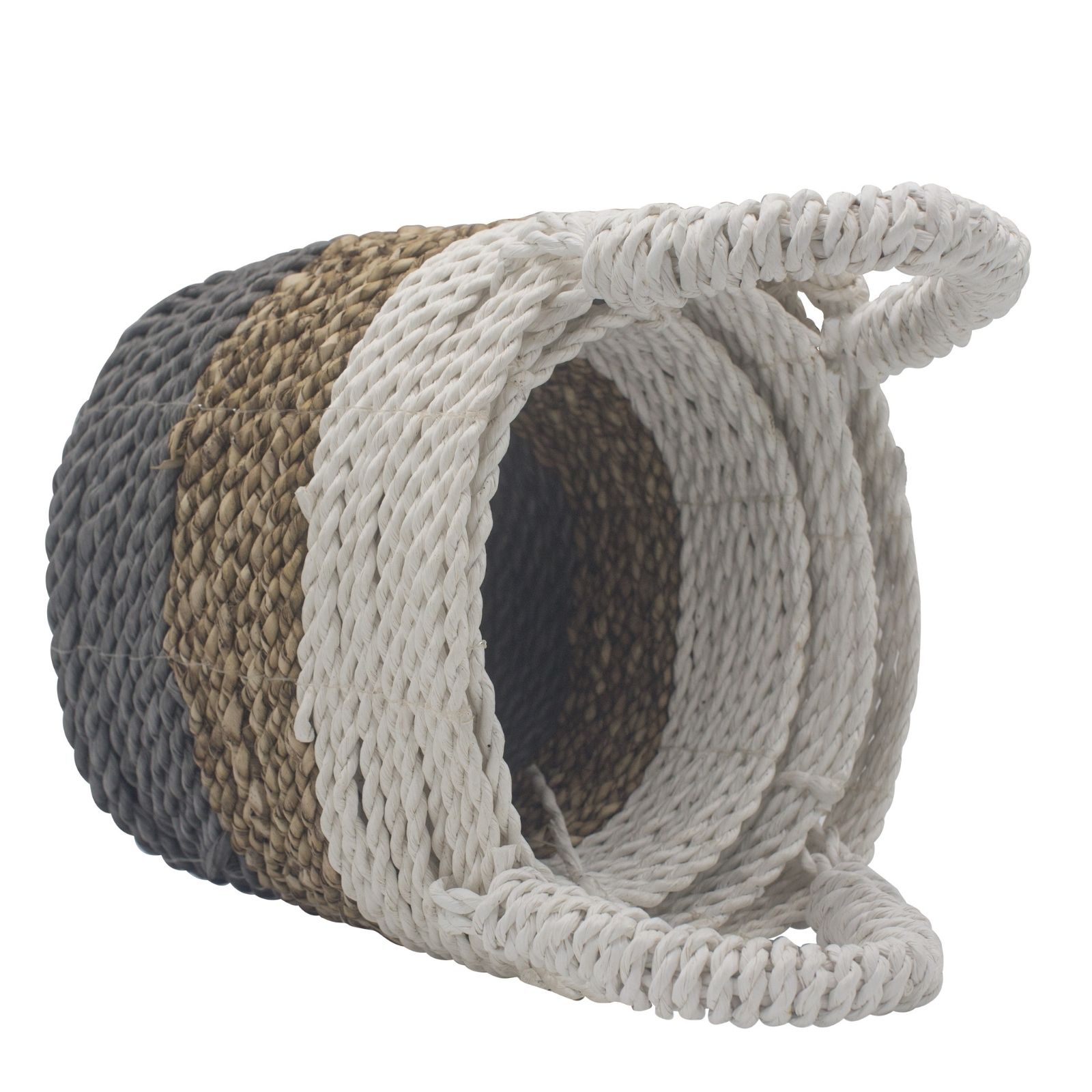 Vendu par lot de 3, chaque panier est fabriqué à la main à partir d'herbes marines respectueuses de l'environnement. Ce trio facile à ranger est idéal pour les paniers-cadeaux et peut même être utilisé comme pot de fleurs chic. Le plus grand est doté d'une poignée supérieure.