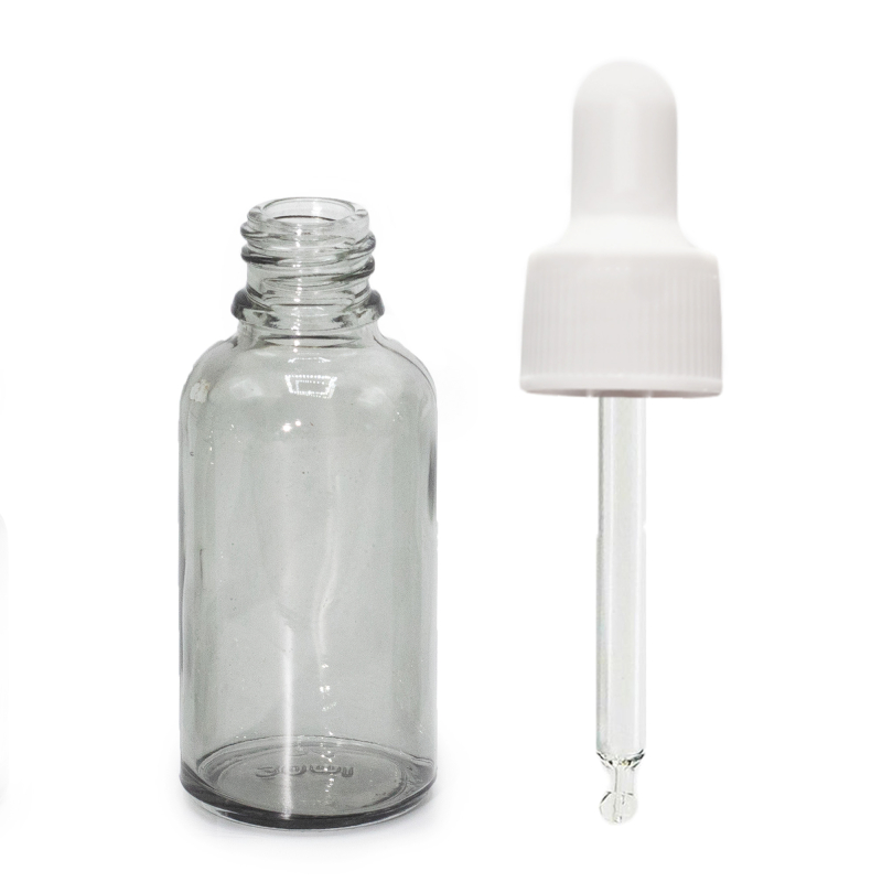 330x Flacon Compte-Gouttes en Verre Gris Fumé de 30 ml avec Pipette Blanche