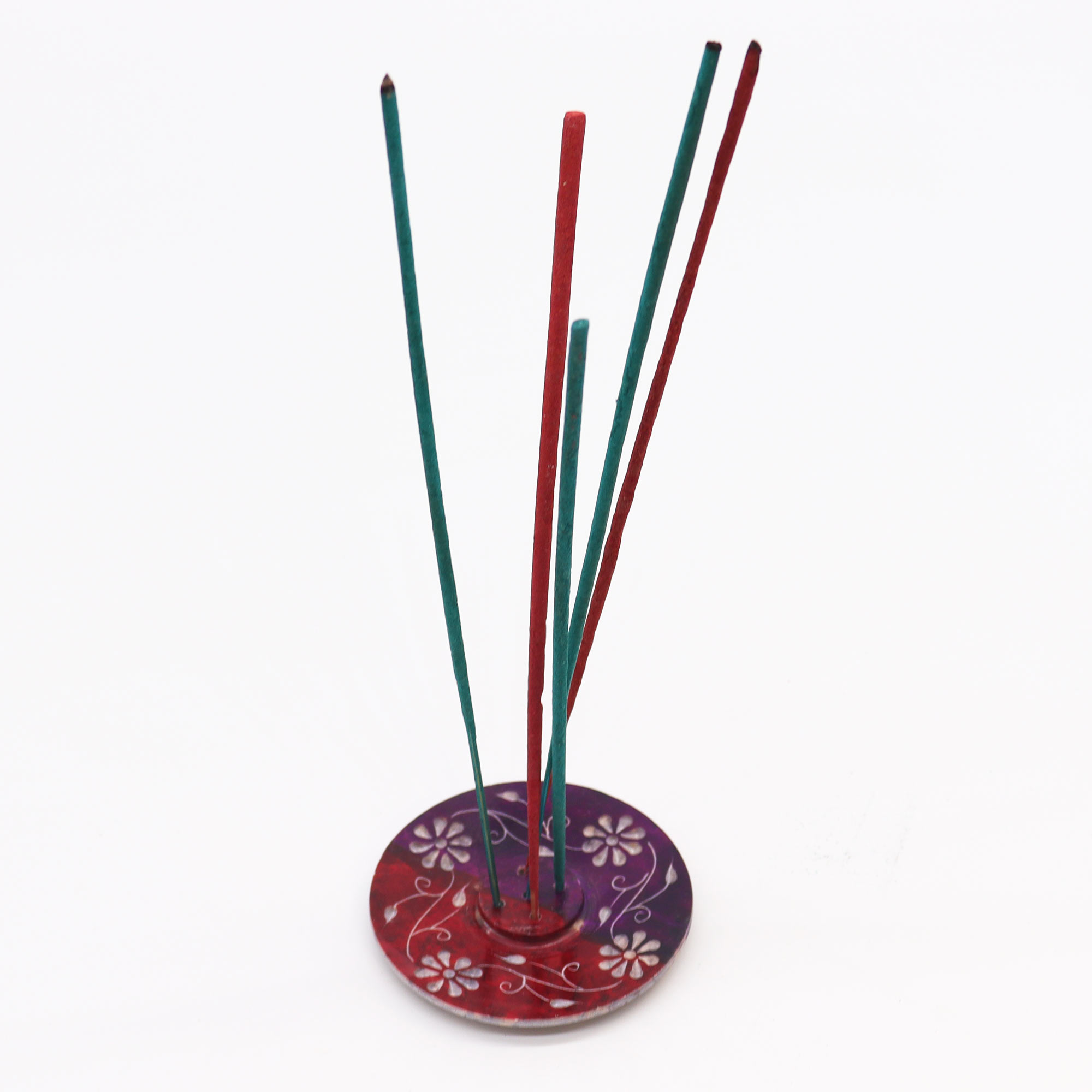 Enrichissez votre collection avec ces charmants porte-encens en stéatite de 8 cm, ornés de motifs floraux.