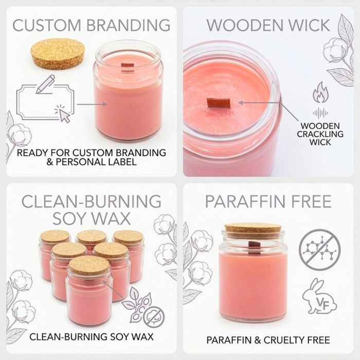 Ajoutez un caractère floral profond à votre collection avec la Bougie en Cire de Soja Woodwick – Rose de Minuit. Conçue pour les détaillants développant leurs propres gammes de bougies, ce produit sans étiquette est prêt à personnaliser, permettant d’introduire une ligne parfumée raffinée sous votre propre label. Le bocal en verre transparent et le couvercle en liège naturel créent une présentation minimaliste compatible avec de nombreux styles de marque.