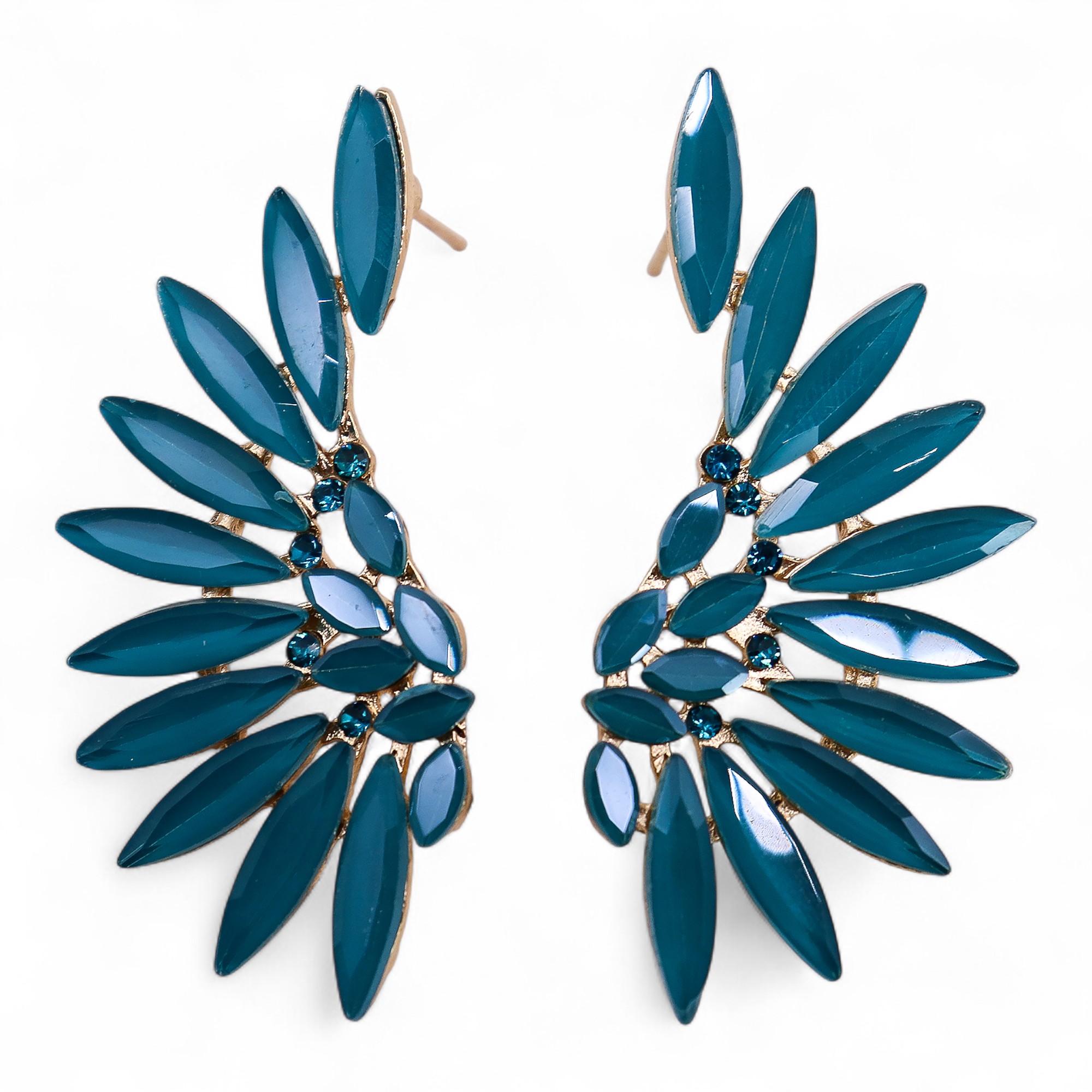 Ces boucles d’oreilles Angel Wings présentent de profonds accents en verre vert sarcelle qui captent la lumière tel l’éclat des vagues océanes. Leur design ailé symbolise le mouvement et la liberté, offrant une pièce à la fois saisissante et facile à porter. Idéales pour les détaillants recherchant des bijoux élégants et colorés qui allient symbolisme et style.