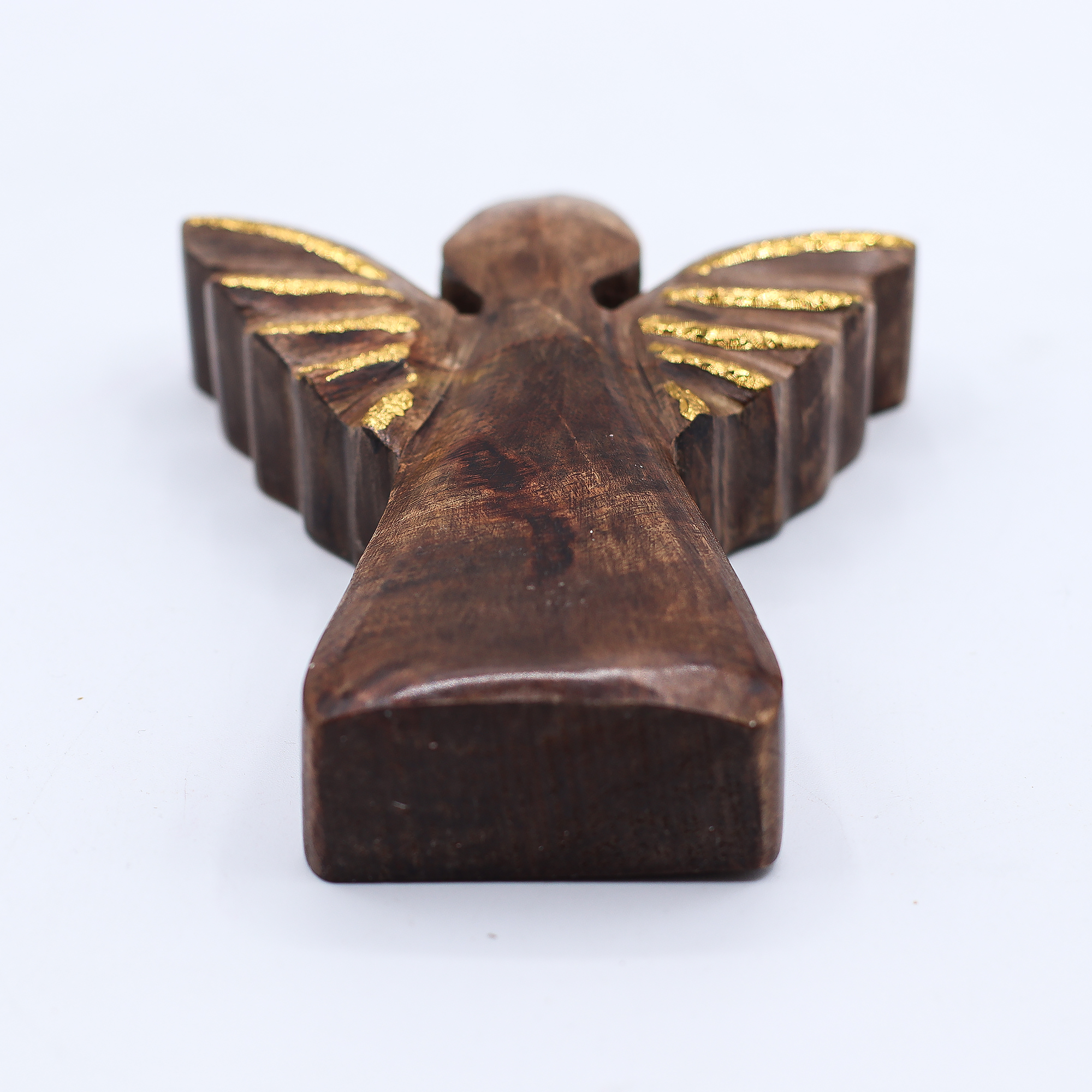 Ce charmant Petit Ange en Bois de Manguier - Décor Doré - 12cm - Décor doré apporte chaleur et sérénité à n'importe quel environnement. Sculpté à la main en Inde à partir de bois de manguier durable, cet ange présente de délicats détails dorés, ajoutant une touche de charme intemporel.