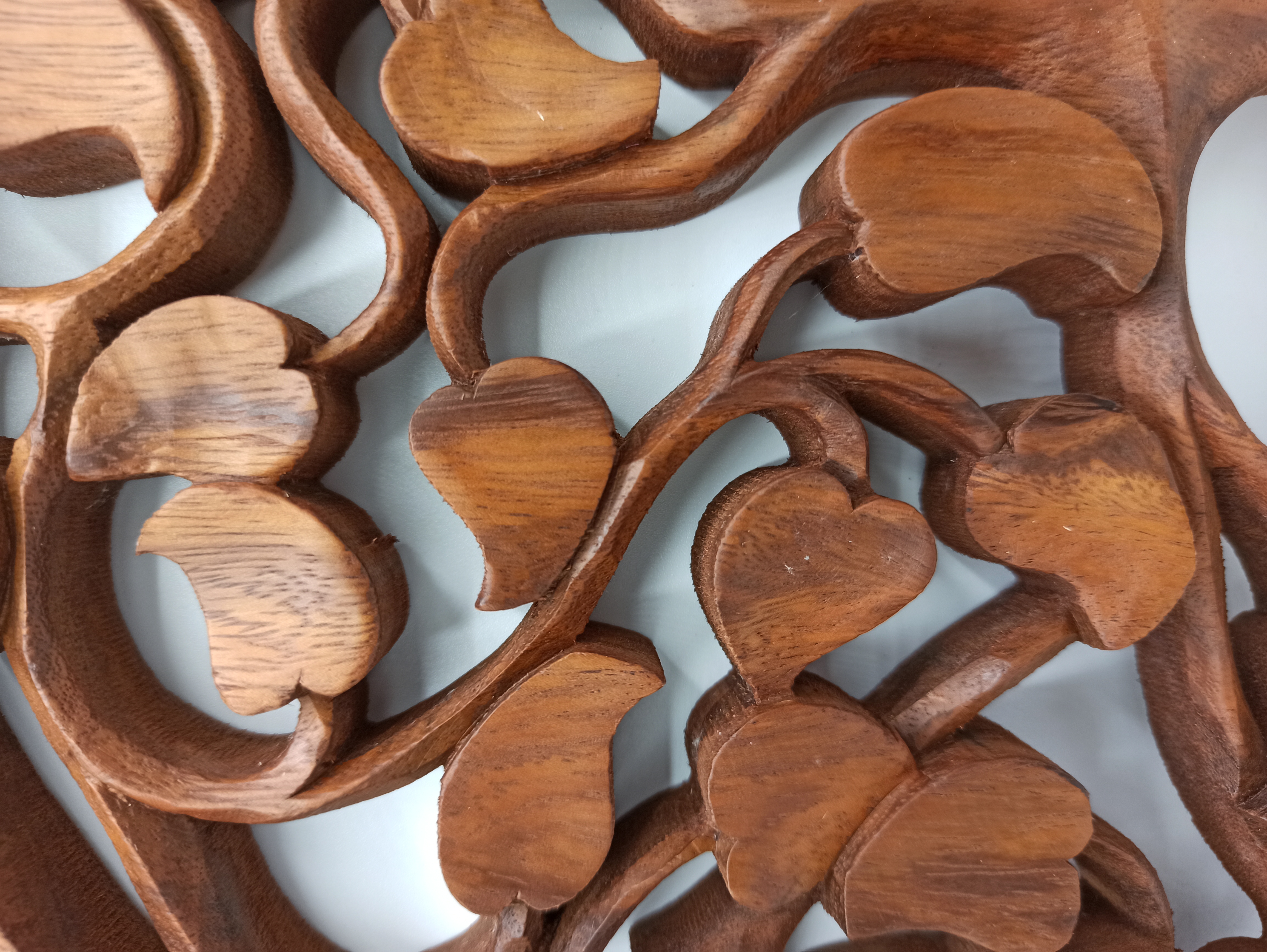 Ce Panneau décoratif en bois - Arbre de Vie Amour Sculpté est sculpté à la main dans du bois de Suar 100 % durable par des artisans indonésiens.